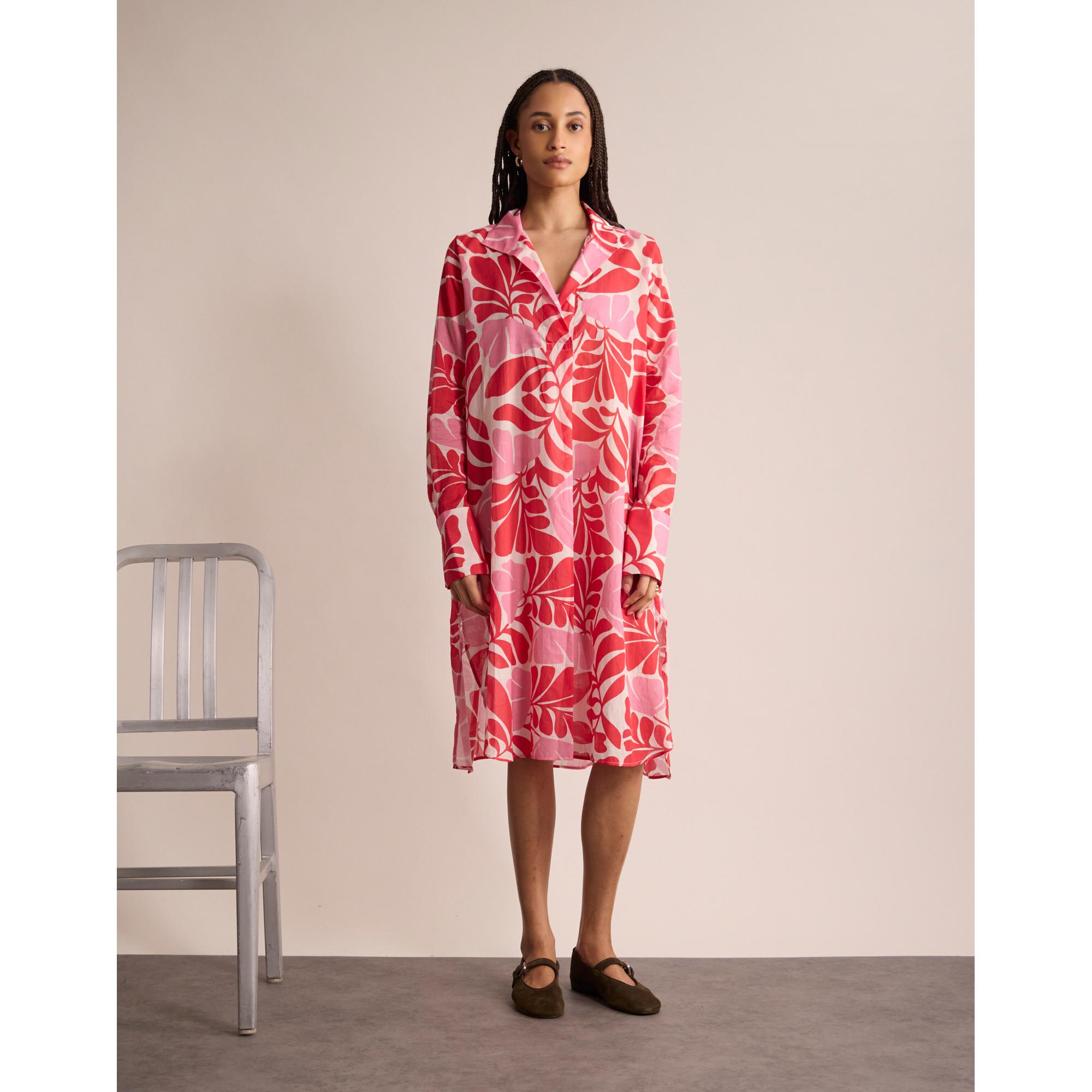 Questo abito presenta un vivace motivo floreale, rendendolo un'aggiunta sorprendente a qualsiasi guardaroba. Il design include un colletto classico e maniche lunghe, offrendo una silhouette senza tempo. La vestibilità rilassata assicura comfort e versatilità per varie occasioni.