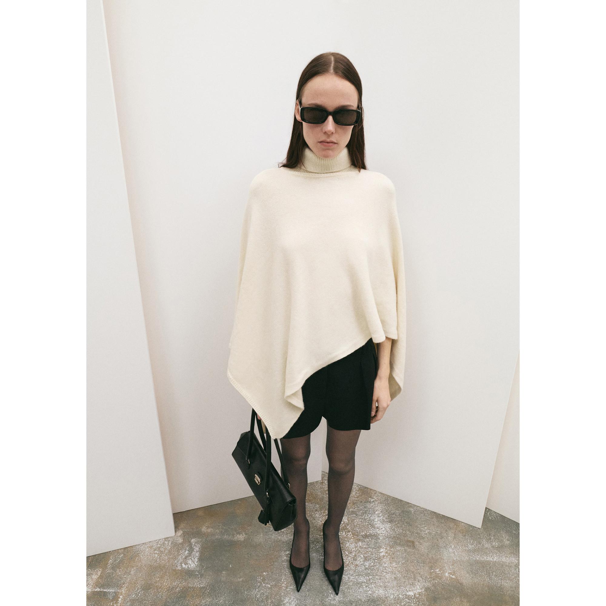Questa mantella presenta un sofisticato design a collo alto, offrendo sia calore che una silhouette chic. Il suo taglio fluido garantisce una vestibilità comoda ed elegante, rendendola un'aggiunta versatile a qualsiasi guardaroba.