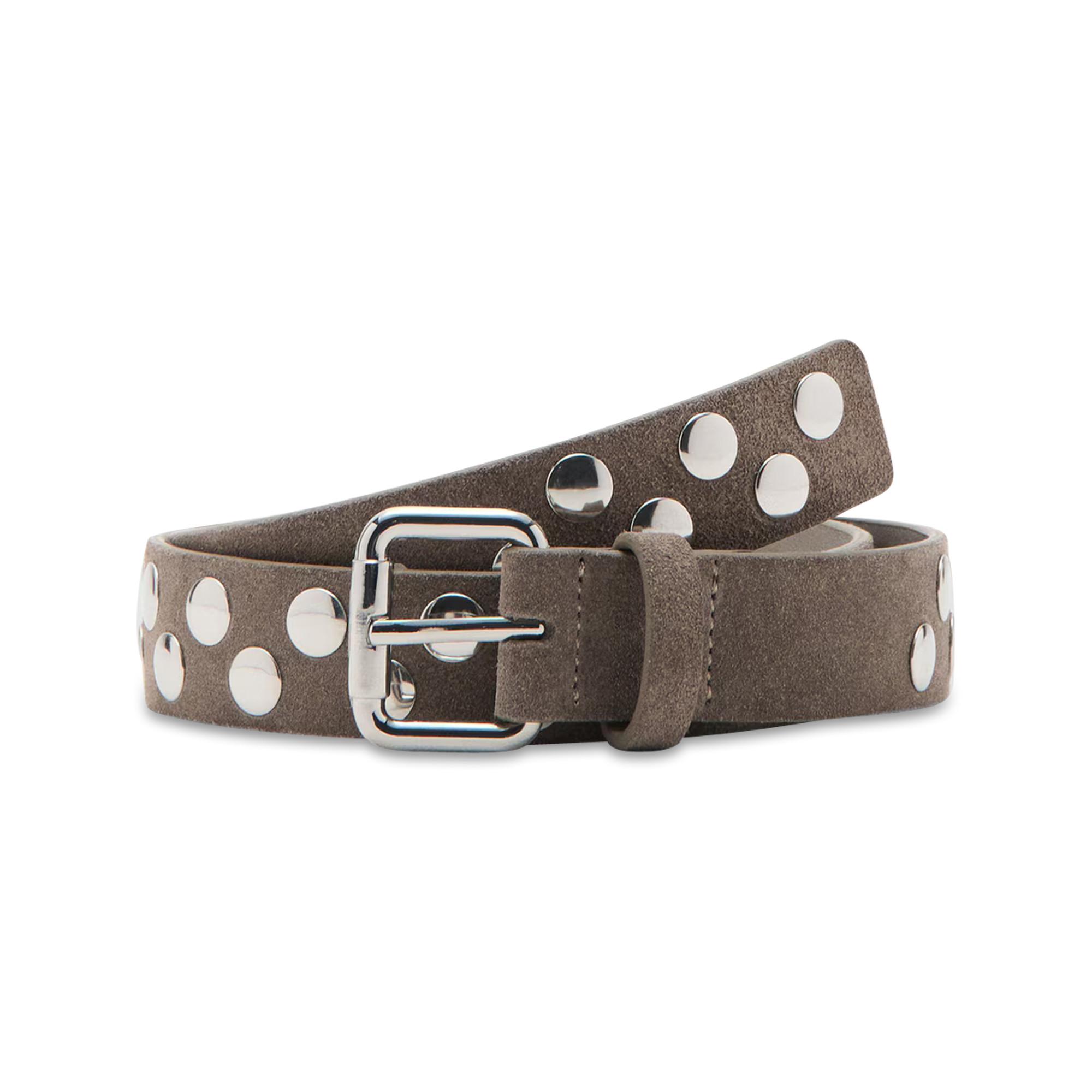 Questa cintura presenta un design classico con un tocco moderno, adornata con borchie per un look distintivo. È un accessorio versatile che completa vari outfit.