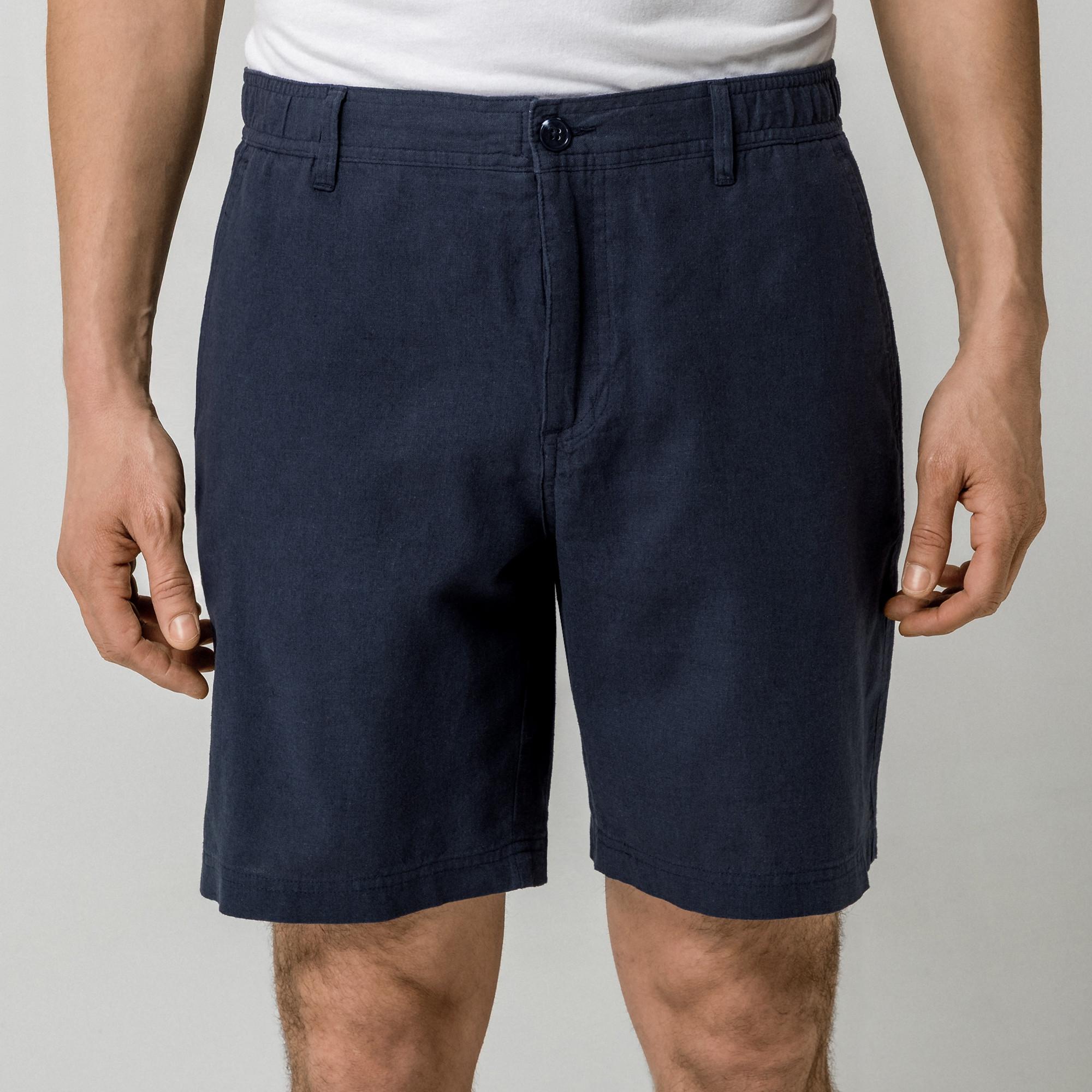 Questi pantaloncini da uomo offrono un'opzione comoda e versatile per varie occasioni casual. Il design presenta una classica chiusura con bottone e cerniera, garantendo una vestibilità sicura. La fascia elastica in vita sul retro offre ulteriore comfort e flessibilità.