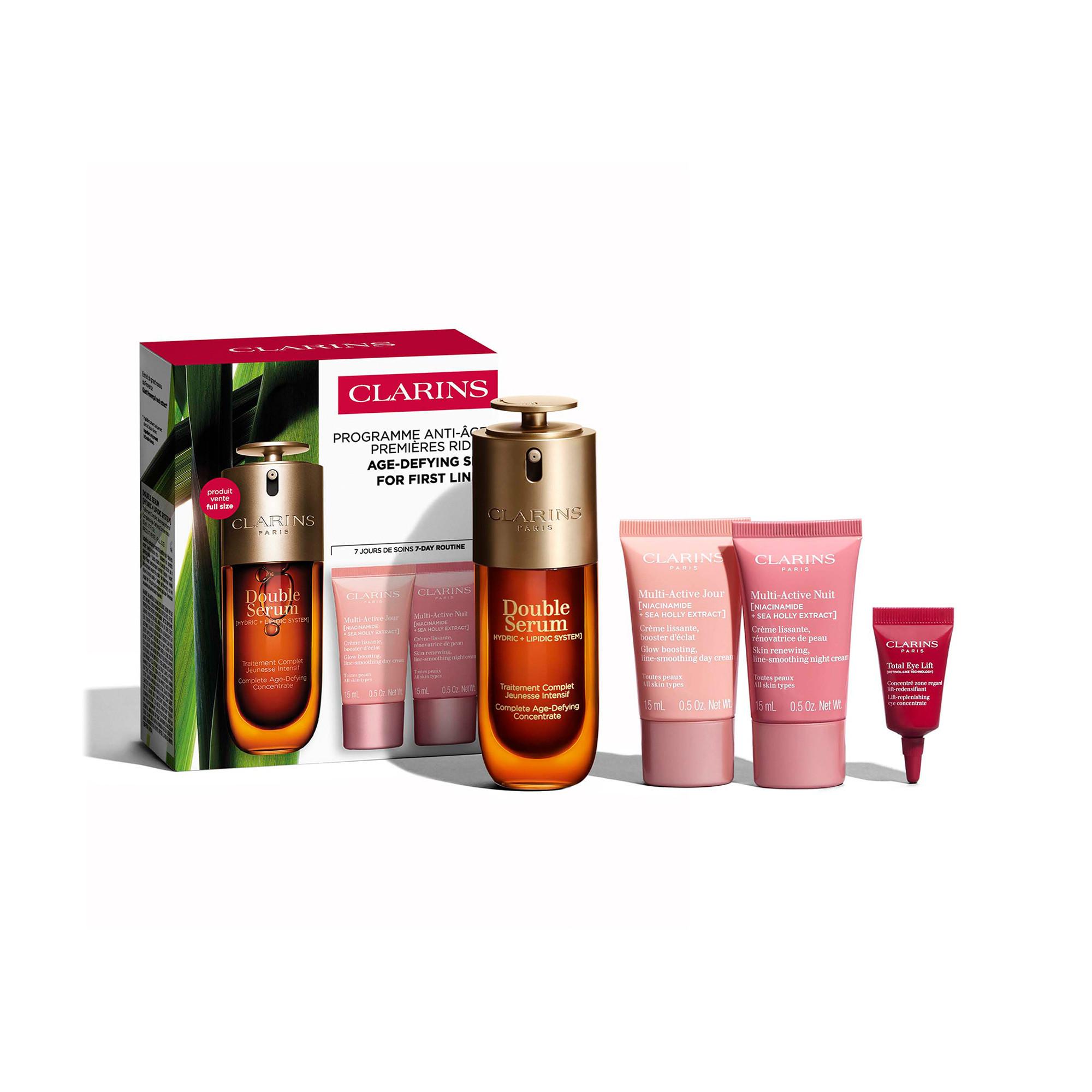 Tutto inizia con Double Serum, l’icona con 27 ingredienti studiata per agire sui segni dell’invecchiamento e aumentare la luminosità della pelle.