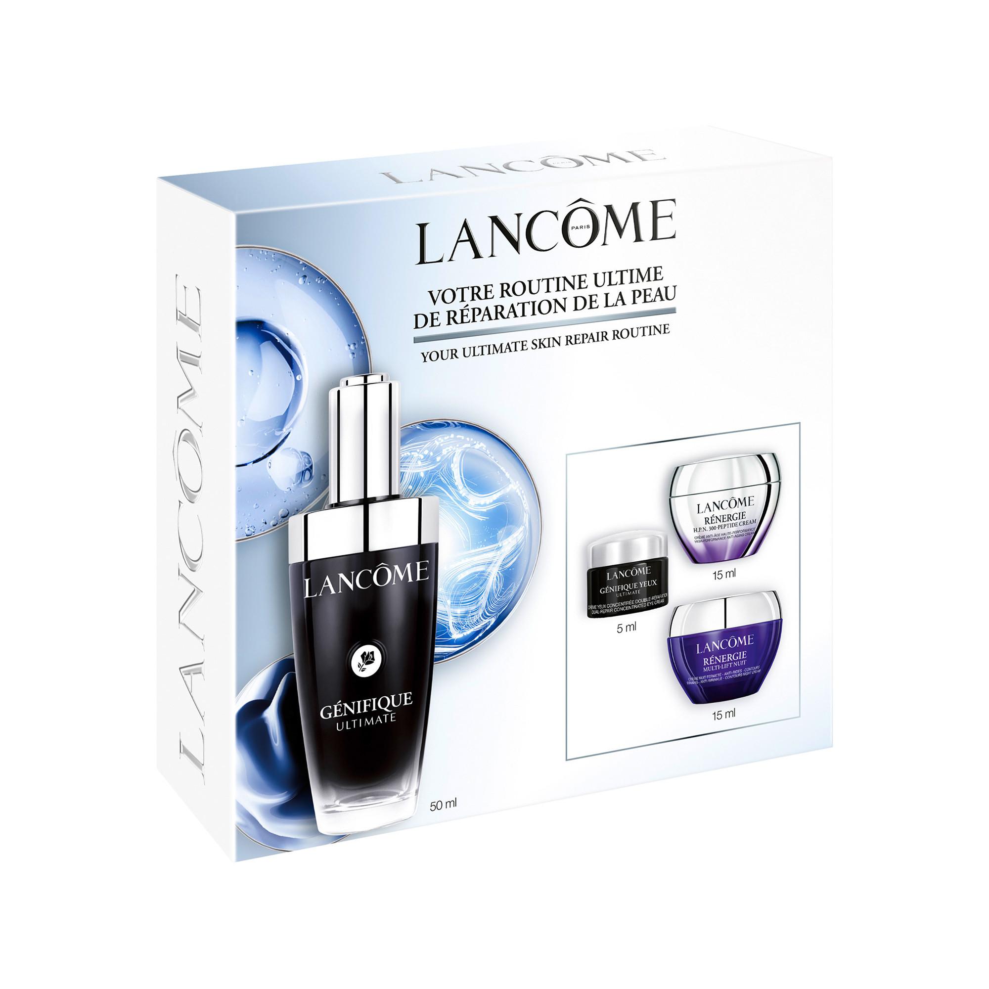 Il Lancôme Génifique Ultimate e Rénergie Set offre una cura completa giorno e notte con siero viso, crema occhi e creme giorno e notte. Con Beta Glucan-CM, acido ialuronico ed estratto di liquirizia, questo set ripara la pelle, riduce rossori, leviga le linee sottili e dona un aspetto visibilmente più giovane alla pelle.