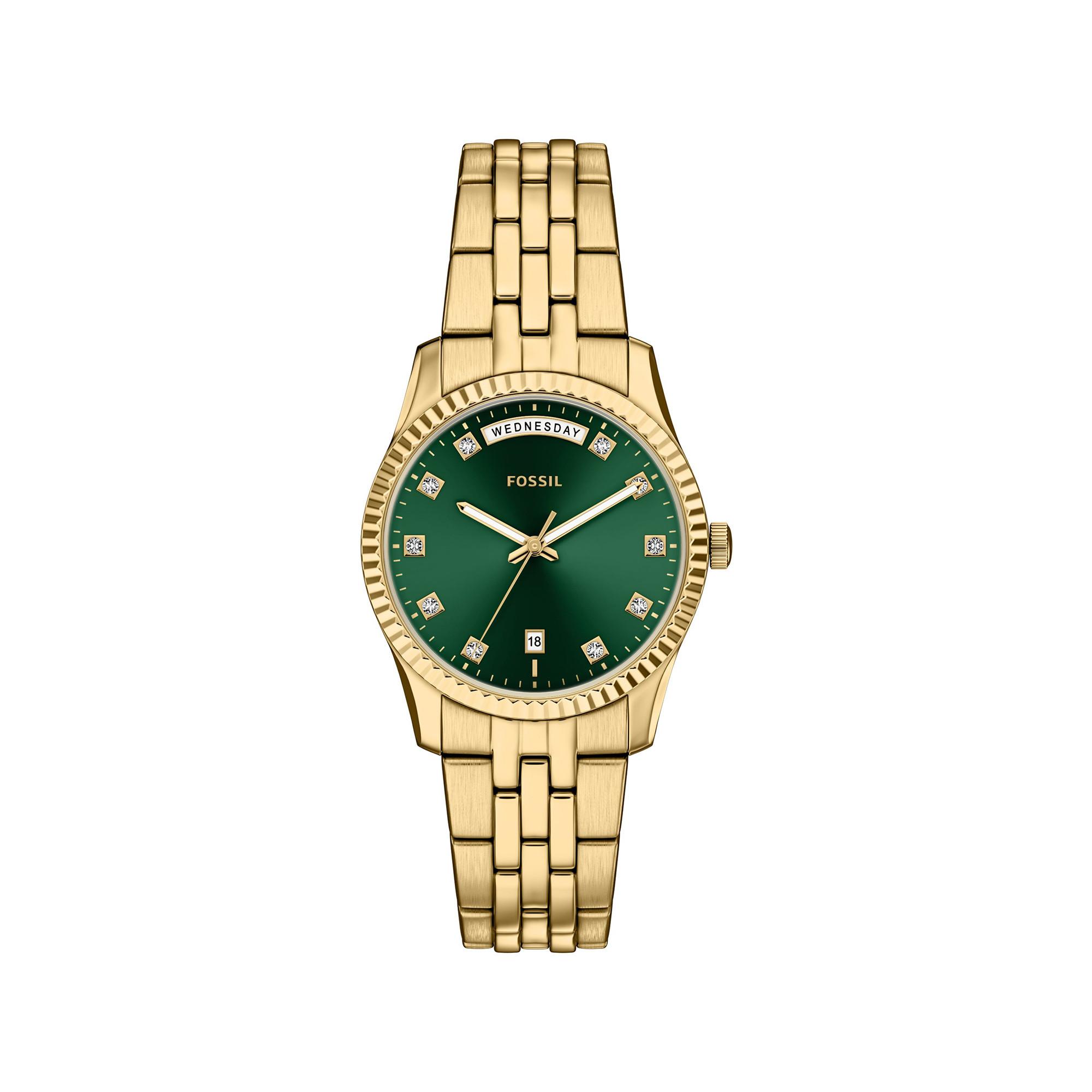 Cassa in acciaio inox dorato con quadrante verde soleil
