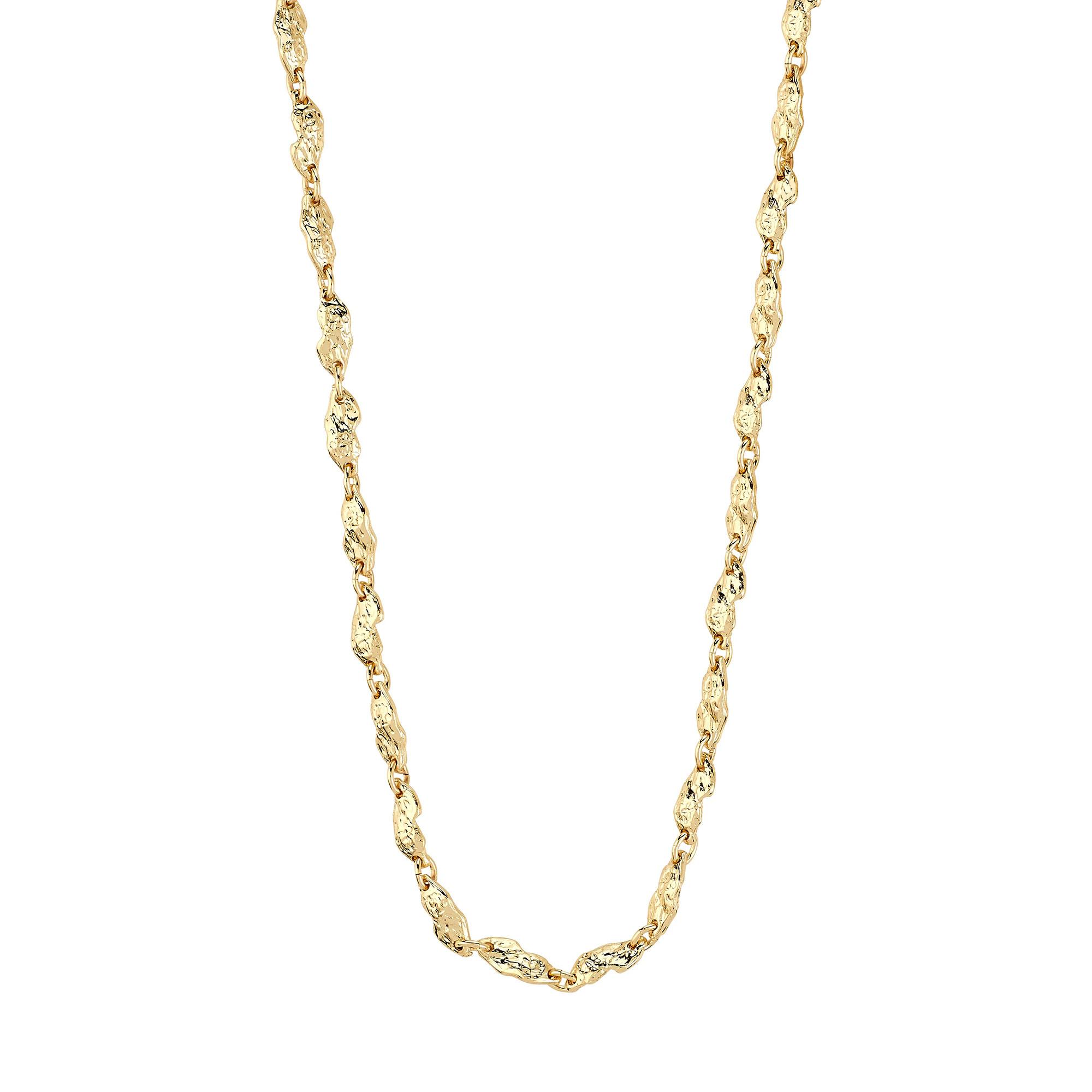 Texture grezza, stile raffinato: la collana ELIYAH placcata oro di Pilgrim e il must-have della stagione. I collegamenti ispirati alla natura e la finitura materica decisa creano una silhouette moderna e disinvolta, ideale per look a contrasto. Lunga 38 cm con estensione di 15 cm e realizzata con il 99 % di materiali riciclati, unisce carattere e consapevolezza.