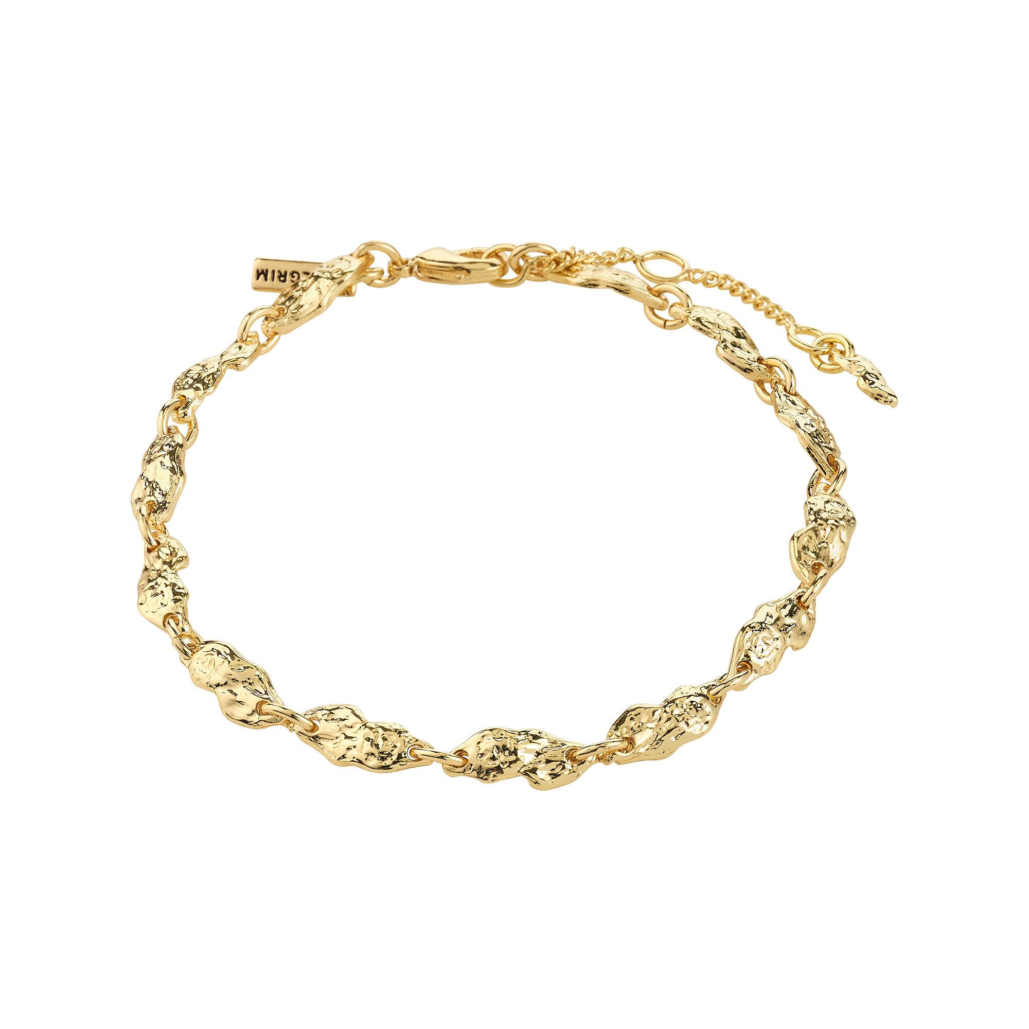 Semplicita materica: il bracciale ELIYAH placcato oro di Pilgrim unisce maglie ispirate alla natura a una finitura testurizzata dal carattere deciso. Il design essenziale dona personalita sia agli outfit eleganti che a quelli casual. Realizzato con il 99 % di materiali riciclati, e un accessorio evergreen.