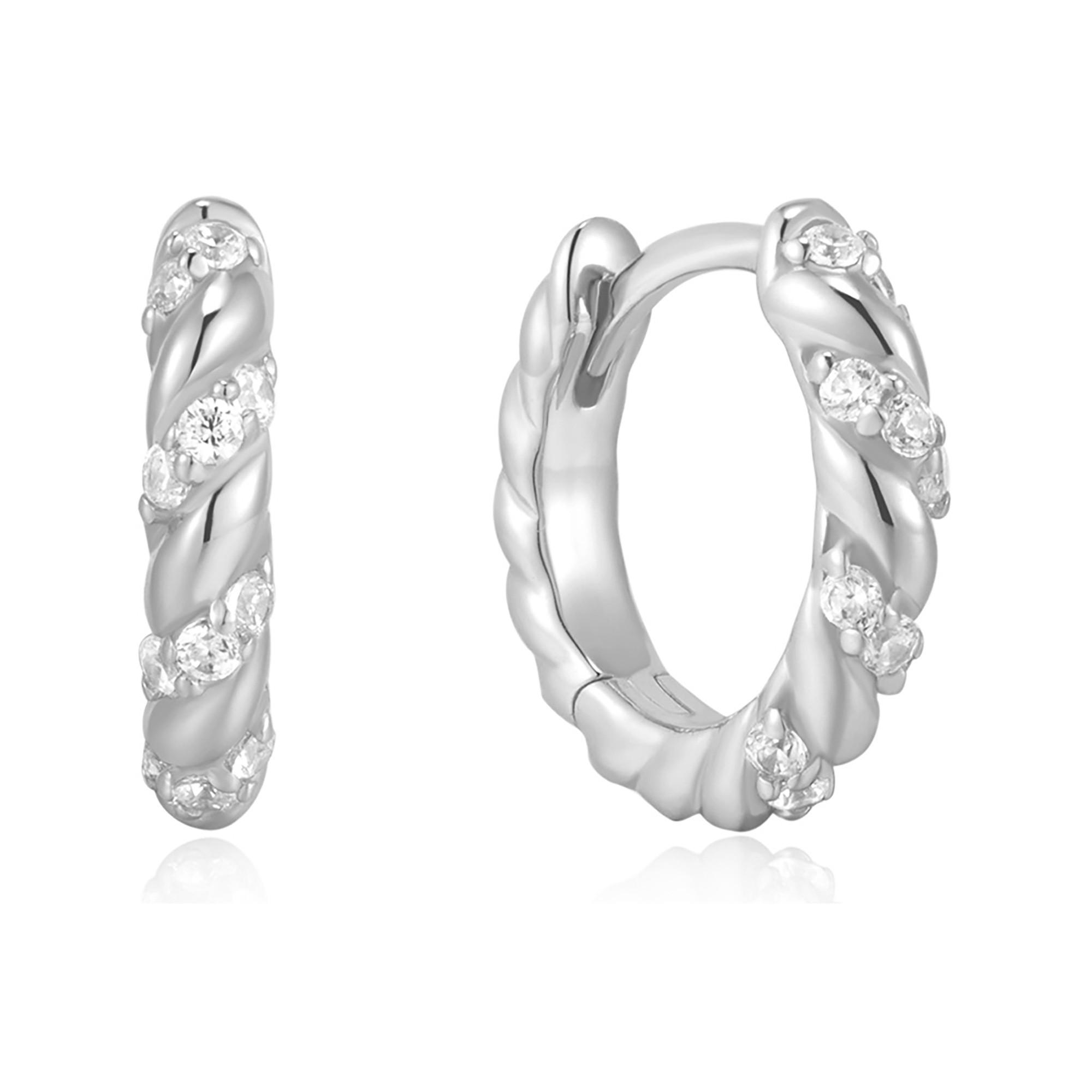 Questi orecchini ANIA HAIE colpiscono per la finitura color argento e il design moderno intrecciato. Le pietre scintillanti sono integrate con armonia nella superficie strutturata, creando un effetto elegante e dinamico. La forma compatta a creola garantisce una vestibilità confortevole e una facile abbinabilità. Un accessorio raffinato per completare look moderni da giorno e da sera.