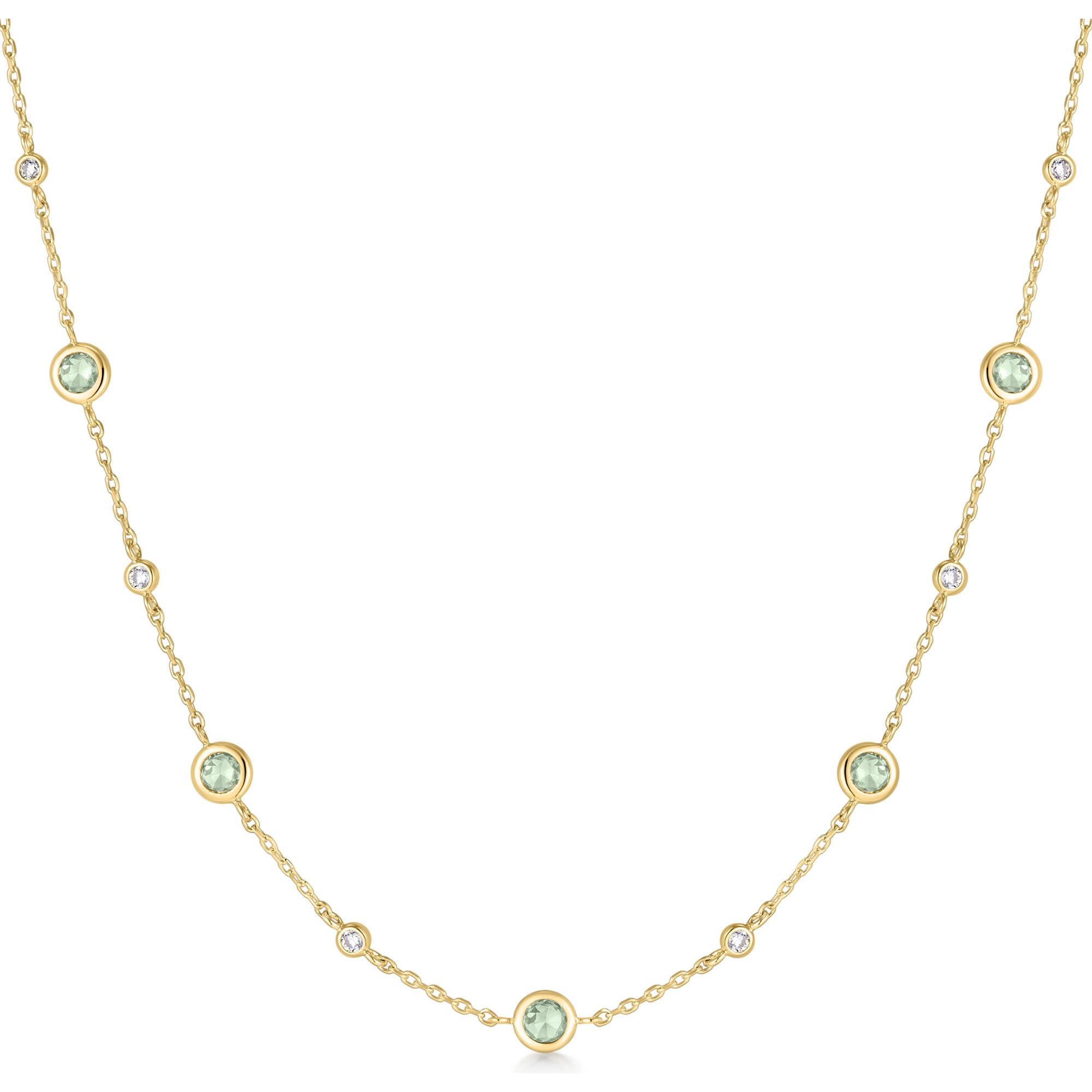Questa collana delicata dall’aspetto dorato colpisce per la catena sottile arricchita da pietre decorative verdi distribuite con armonia. I piccoli dettagli chiari aggiungono leggerezza e valorizzano lo stile elegante e moderno. Un gioiello versatile, ideale da indossare da solo o in un raffinato look a strati.