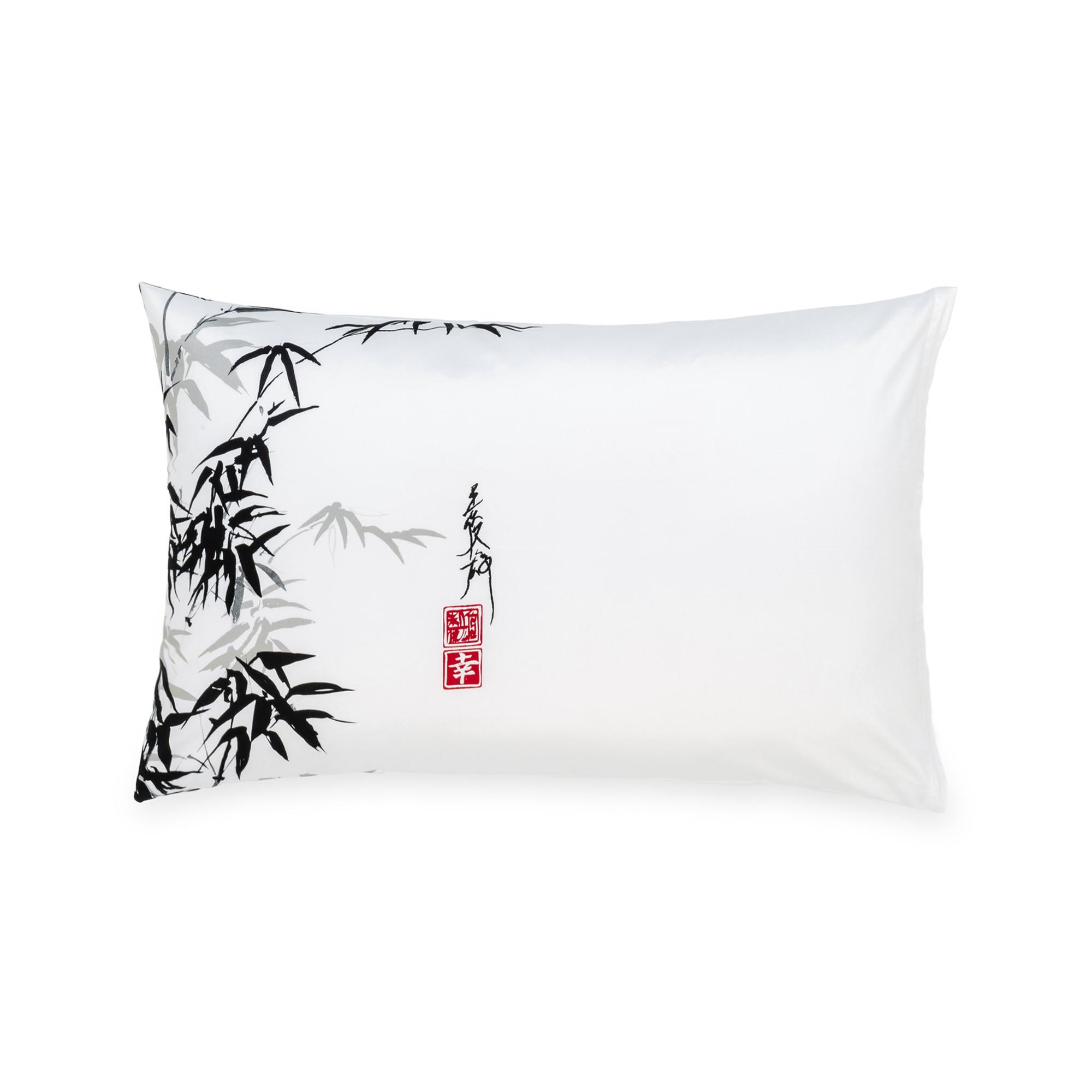 Questa federa presenta un'elegante stampa a bambù, aggiungendo un tocco di design ispirato alla natura a qualsiasi camera da letto. Lo sfondo bianco nitido fornisce una tela pulita per il sorprendente motivo a bambù nero e grigio, creando un'estetica serena e sofisticata.