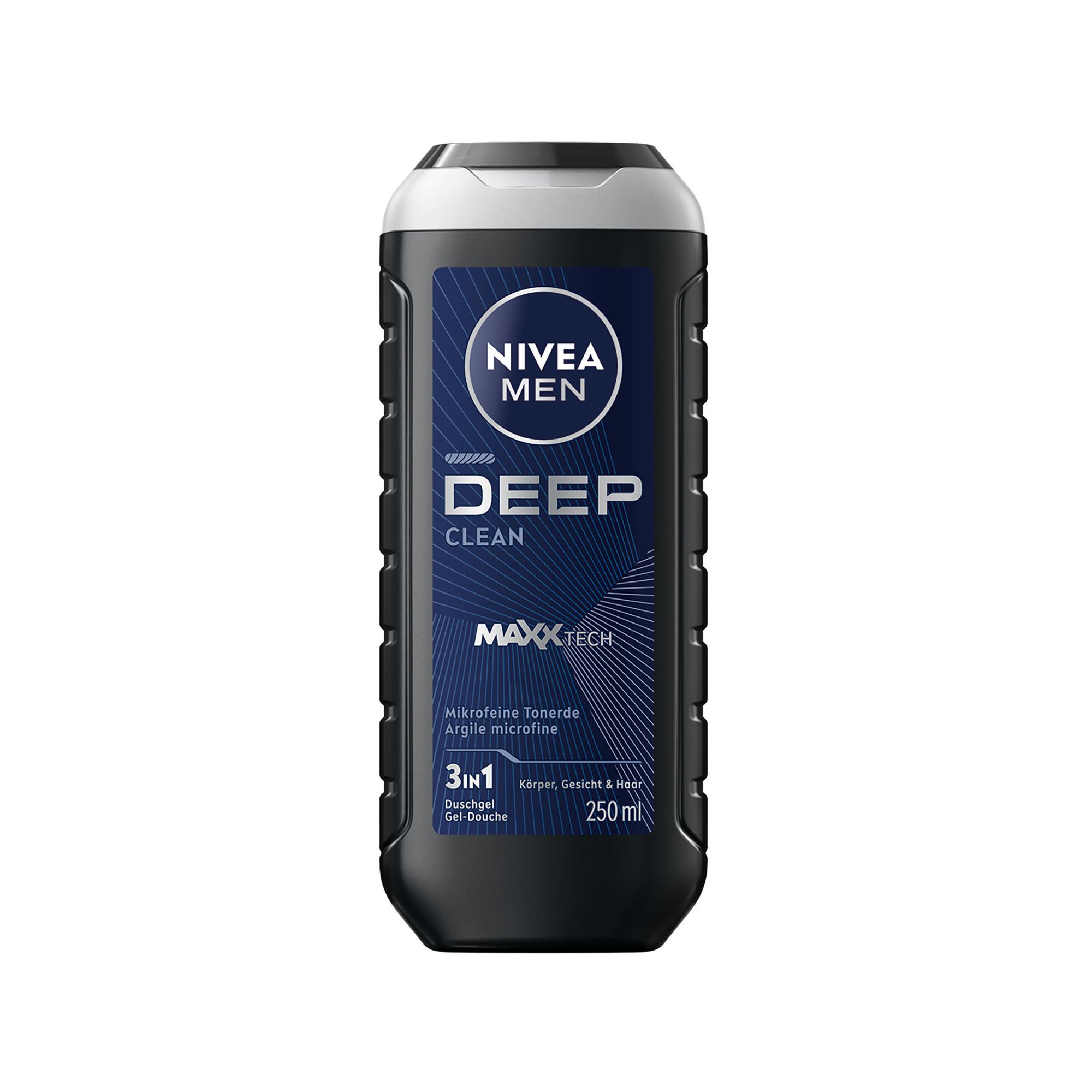 Scopri un'esperienza doccia intensa con il gel doccia NIVEA MEN Deep 250 ml. Questo gel doccia per uomo dal profumo intenso garantisce una pulizia profonda e lascia la pelle fresca. La formula rinfrescante MAXXTech, arricchita con argilla microfine, assorbe lo sporco dalla pelle e la protegge dalla disidratazione, per una sensazione di rivitalizzazione che dura a lungo, anche dopo la doccia. Basta applicare il gel doccia detergente sulla pelle bagnata, massaggiare, lasciare agire brevemente e risciacquare. Concediti ogni giorno una pausa di benessere con il gel doccia NIVEA MEN e scopri come la tua pelle si sente meravigliosamente fresca. È adatto a tutti i tipi di pelle e la formula è priva di microplastiche e biodegradabile al 99%*. La tollerabilità cutanea è dermatologicamente confermata.