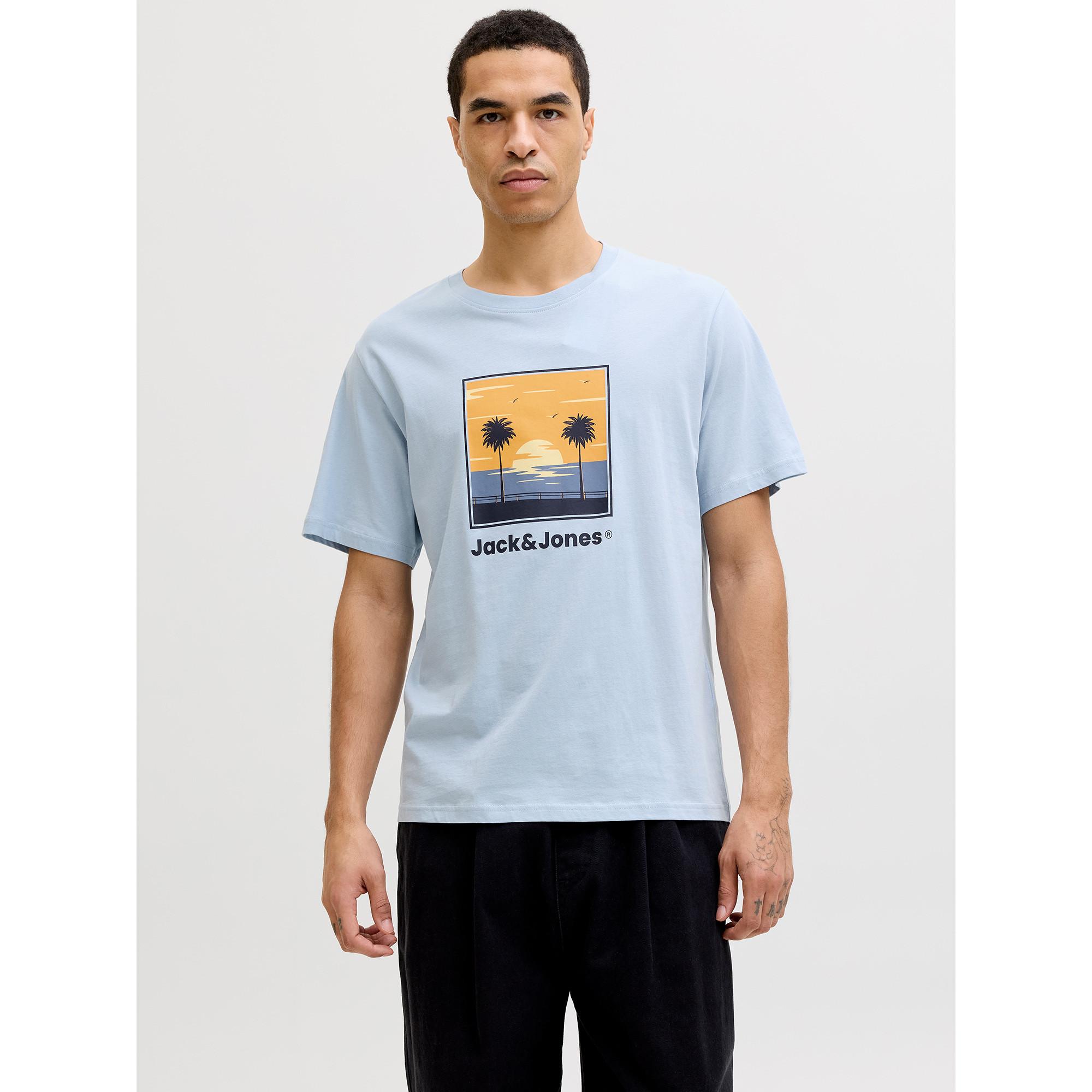 JACK & JONES Perry T-Shirt Girocollo con Stampa Palma