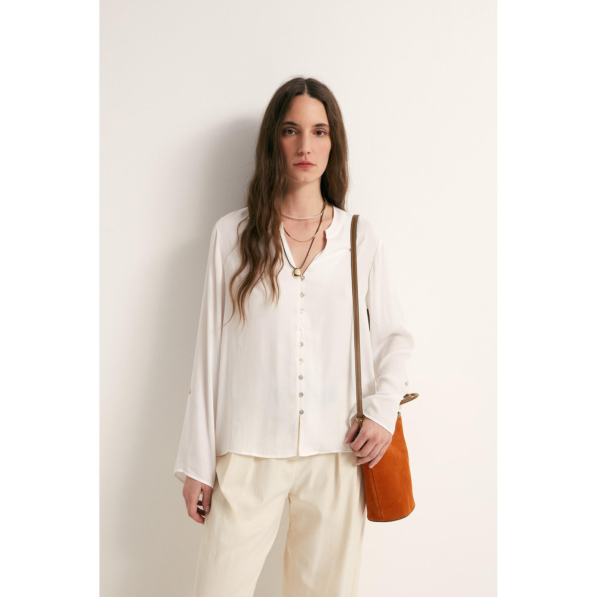 Questa camicetta offre uno stile contemporaneo adatto a tutte le stagioni. Realizzata al 100% in poliestere, è un'opzione comoda e versatile per diverse occasioni.