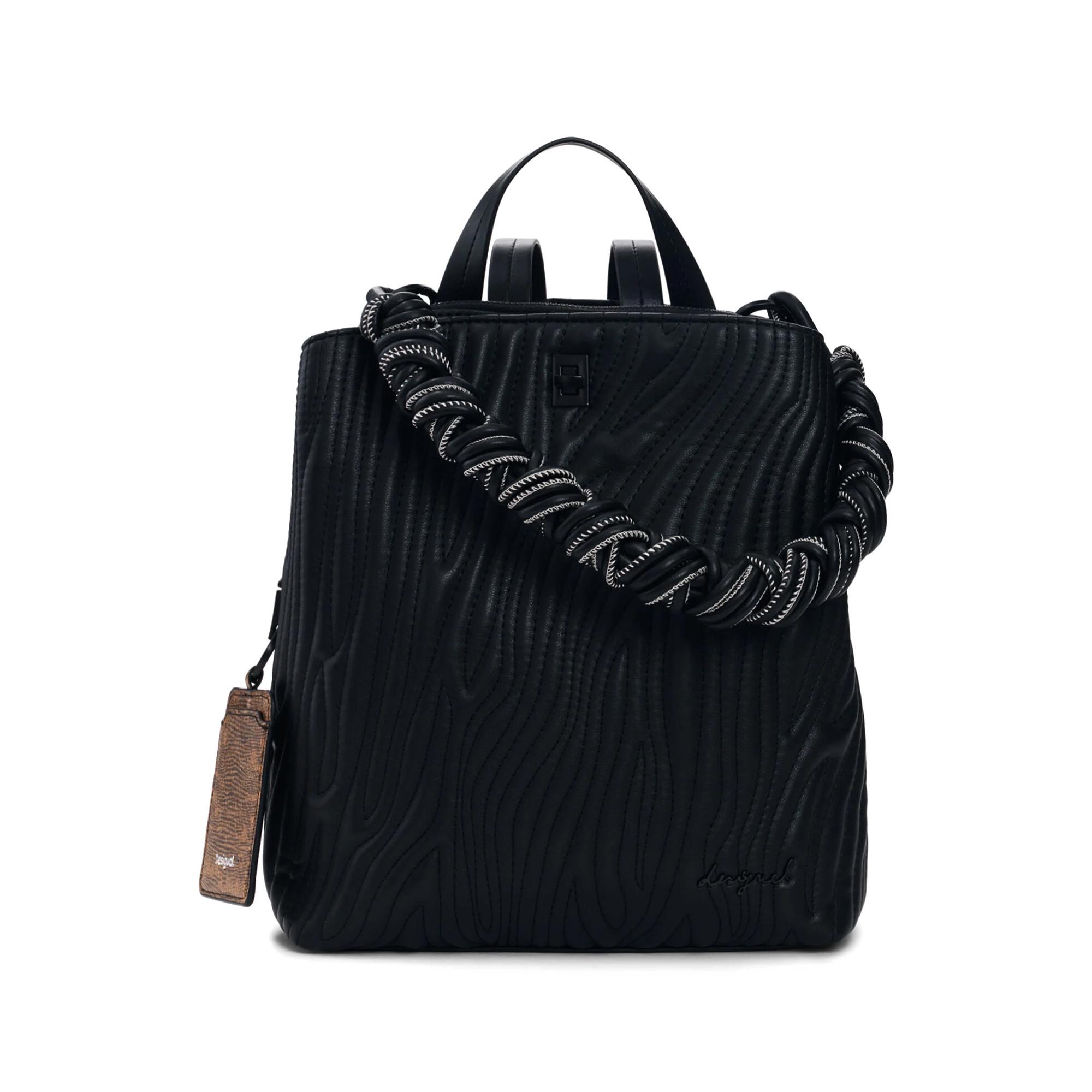 Questo zaino elegante presenta un motivo in rilievo che aggiunge una texture unica e un interesse visivo al suo design. È dotato di una maniglia superiore e di spallacci regolabili per opzioni di trasporto versatili. Lo scomparto principale offre ampio spazio per gli essenziali quotidiani, rendendolo un accessorio pratico per varie occasioni.