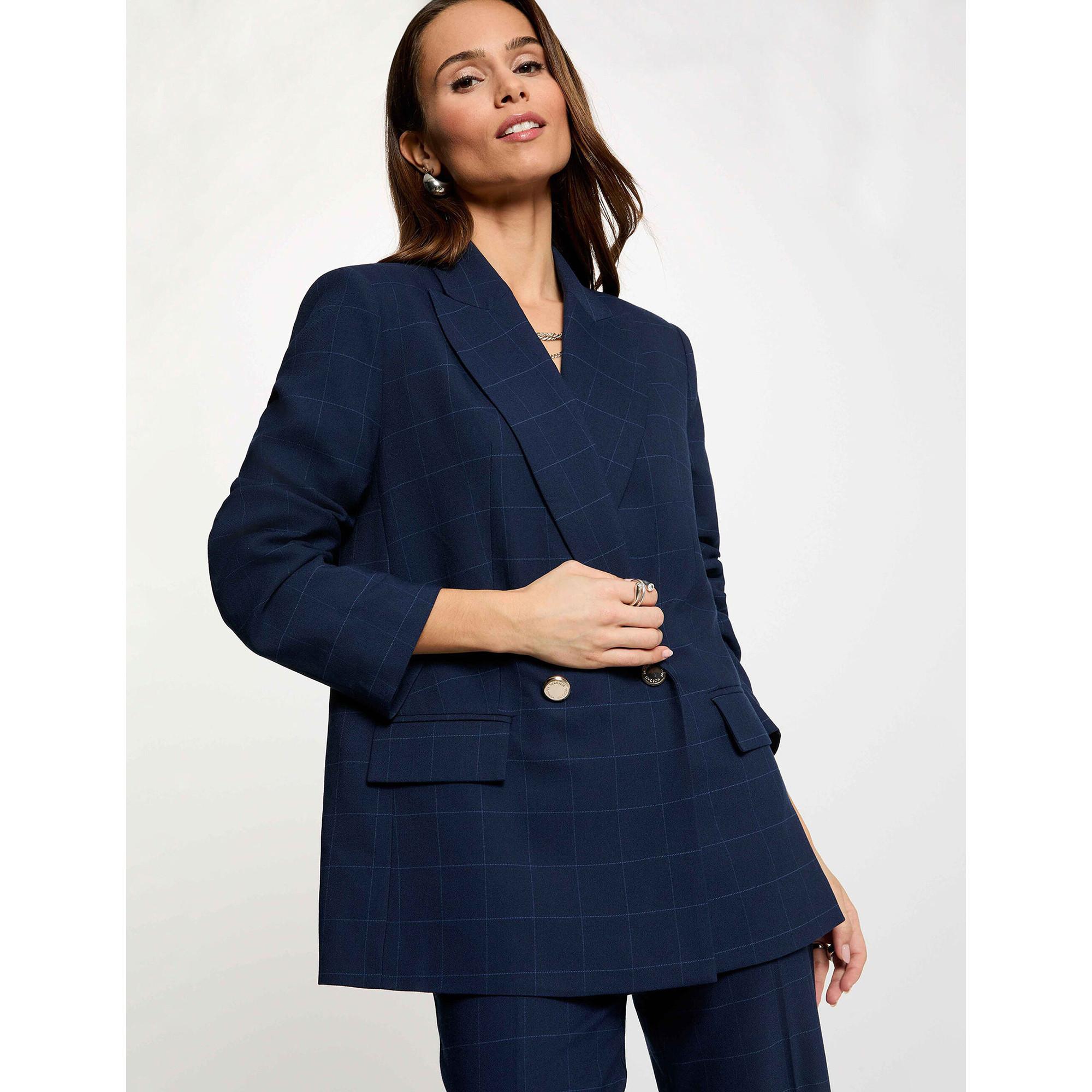 Questo blazer doppiopetto presenta un sofisticato motivo a quadri, offrendo un look intramontabile ma alla moda. Il design include un colletto classico e revers, che ne esaltano l'elegante silhouette. È una scelta ideale per creare un ensemble raffinato e curato.
