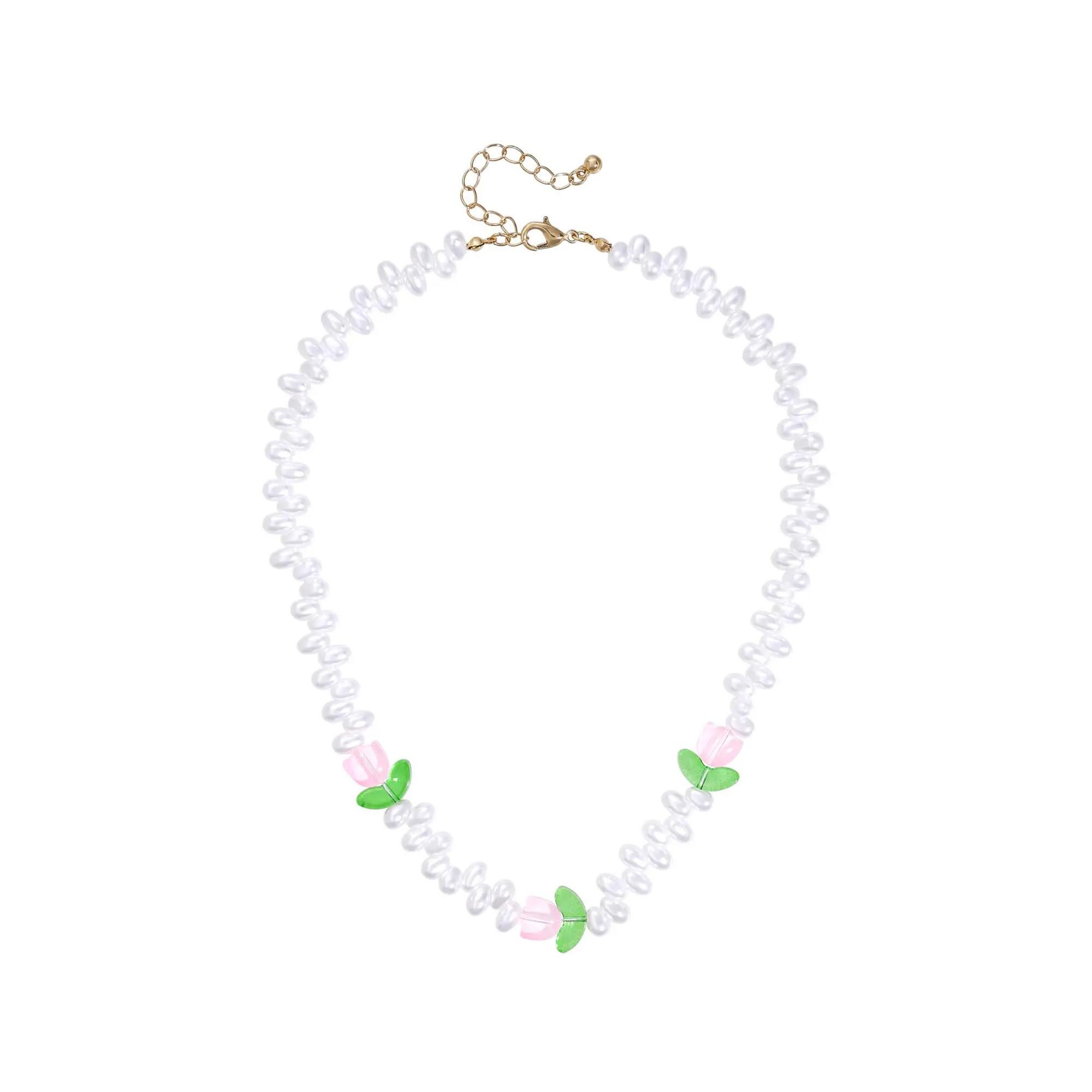 La collana Pearly Tulip unisce perle artificiali bianche e lucenti a delicati tulipani nei toni del rosa e del verde. Il design floreale dona un’eleganza fresca e femminile, rendendo la collana un vero protagonista del look. La catena di prolunga permette una vestibilità regolabile e un abbinamento armonioso con altri gioielli.