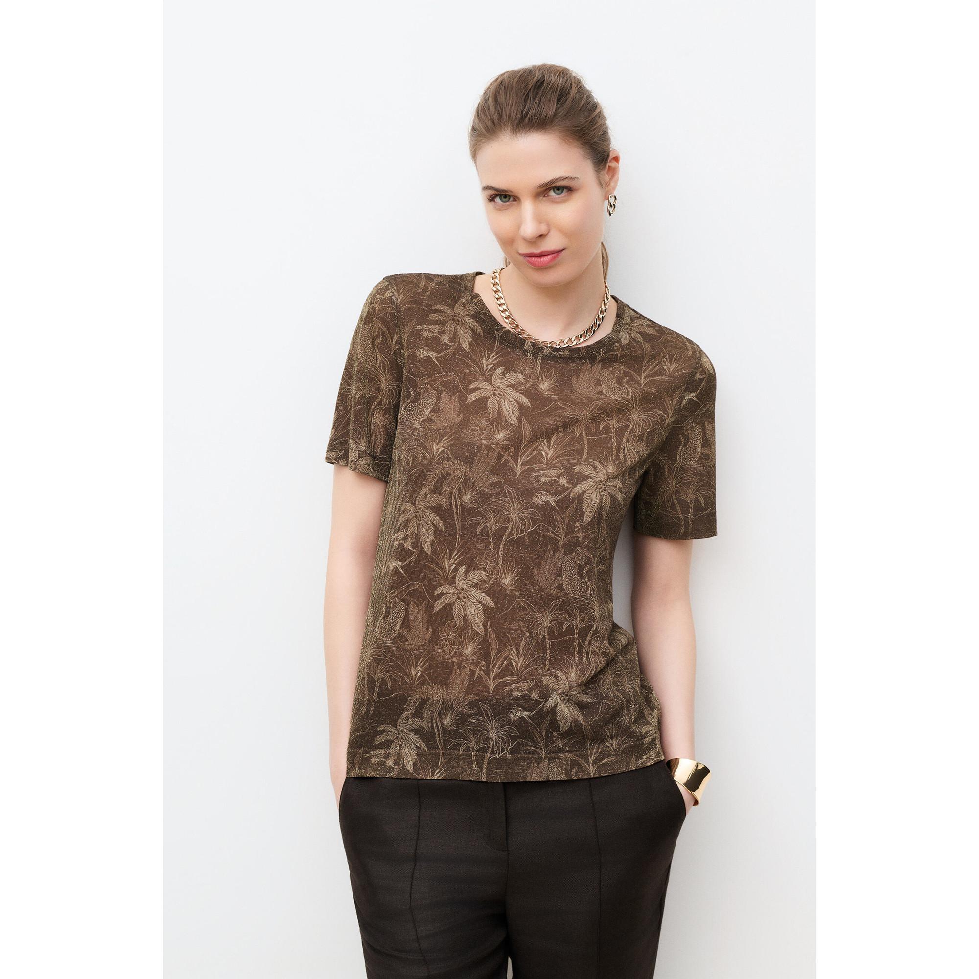Questa t-shirt a maniche corte offre un'opzione comoda e versatile per l'uso quotidiano. La sua lunghezza normale la rende facile da abbinare a vari capi inferiori.