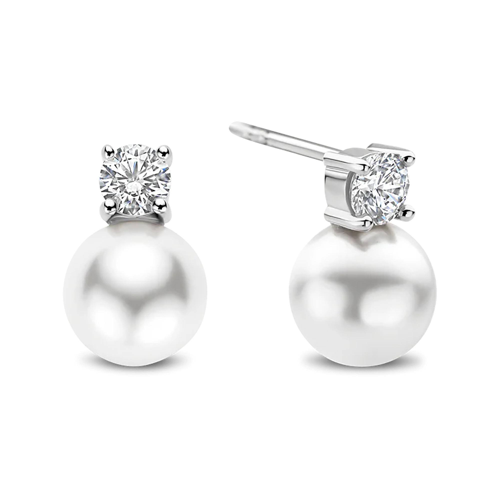 Questi orecchini con perla e zirconia sono realizzati in argento sterling 925 di alta qualità e progettati come raffinati orecchini a perno. Sopra la perla è incastonata una brillante pietra di zirconia che cattura delicatamente la luce, creando un elegante equilibrio tra brillantezza e morbidezza. La perla presenta una superficie liscia e luminosa che ne esalta il raffinato splendore.