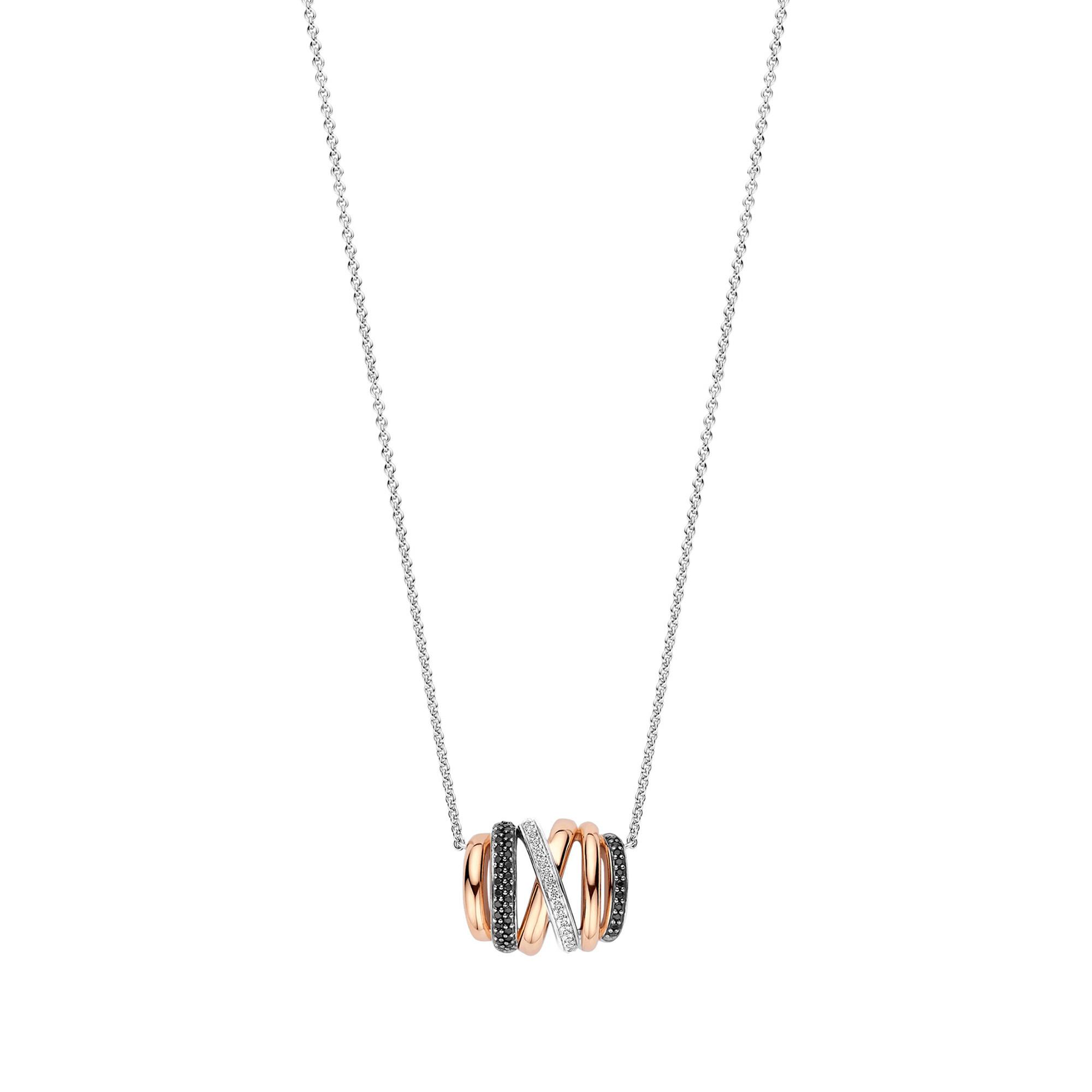 La collana Honeycomb di TI SENTO si distingue per il suo design scultoreo e l eleganza contemporanea. Realizzata in argento sterling 925, è impreziosita da un elemento Honeycomb placcato oro rosa con motivo Circle & Cross‑over che si adagia armoniosamente sul décolleté. I zirconia bianchi e neri creano un contrasto raffinato e affascinanti riflessi di luce. Da indossare da sola come statement o abbinata ad altre collane per un look moderno.
