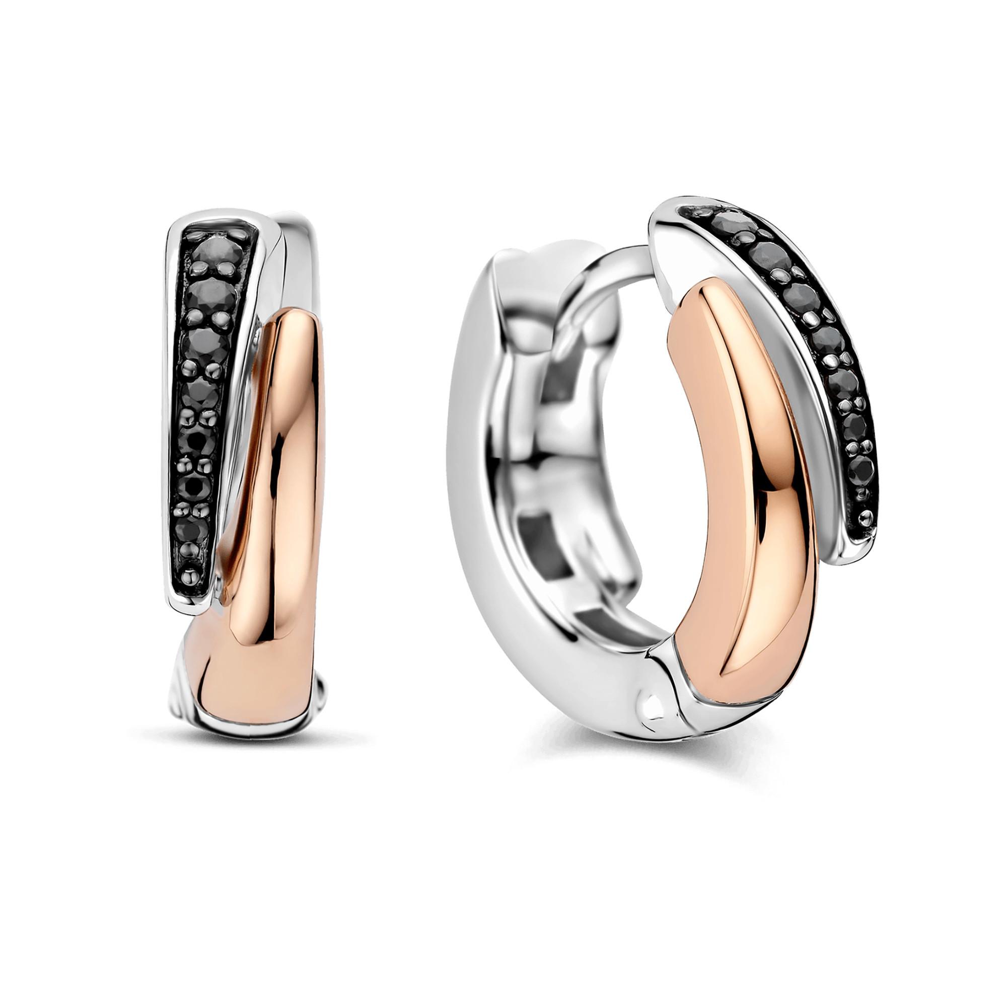 Gli orecchini Black Zirconia Layered Hoops di TI SENTO si distinguono per il loro design moderno e deciso. Realizzati in argento sterling 925 con raffinata placcatura color oro rosa, presentano una struttura a due livelli: una fila è impreziosita da zirconia neri, mentre l altra ha una finitura liscia e luminosa. Il contrasto tra il caldo tono oro rosa e la brillantezza scura degli zirconia crea un effetto elegante e contemporaneo. Compatti e confortevoli, sono ideali per l uso quotidiano e perfetti anche per completare look serali.