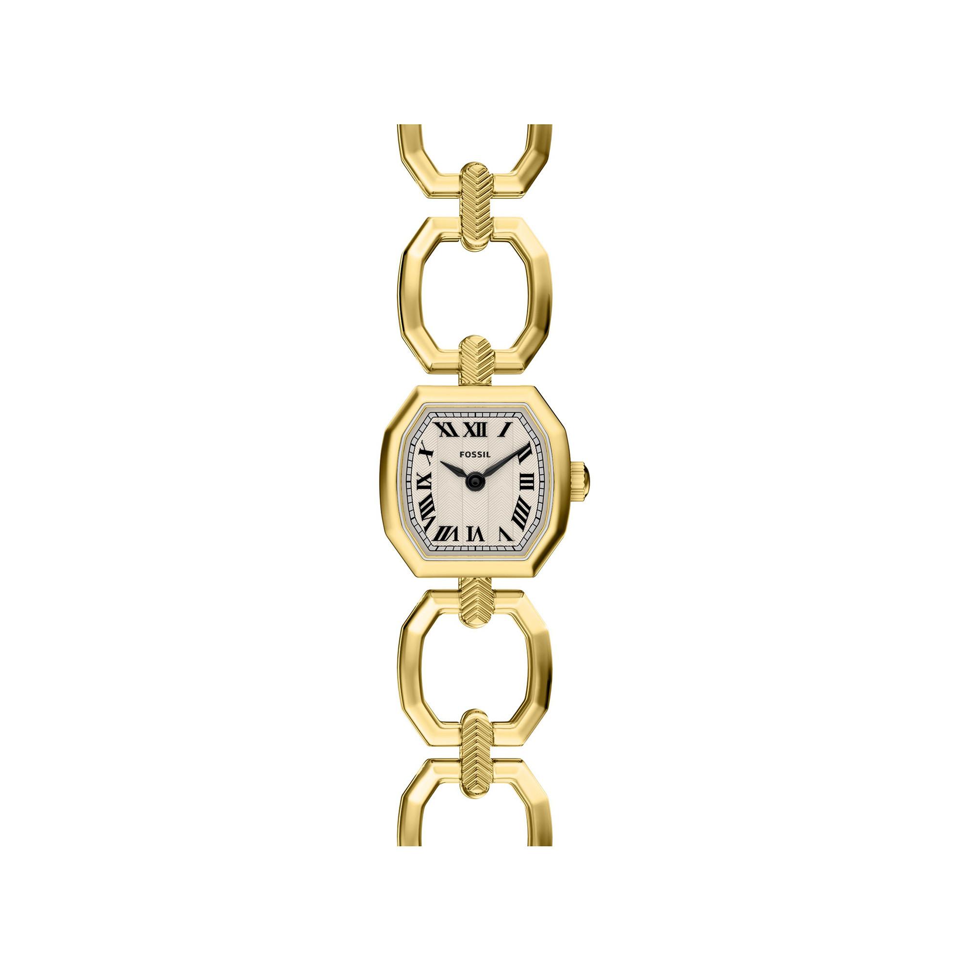 Un quadrante color crema satinato con una texture delicata dona a questo orologio un eleganza sobria e raffinata. La cassa geometrica ottagonale in acciaio inossidabile color oro crea un accento deciso e moderno. Il bracciale coordinato in acciaio color oro assicura un look armonioso ed è regolabile individualmente grazie alla chiusura Adjust‑O‑Matic. Linee pulite e proporzioni studiate bilanciano la forma distintiva con dettagli discreti.