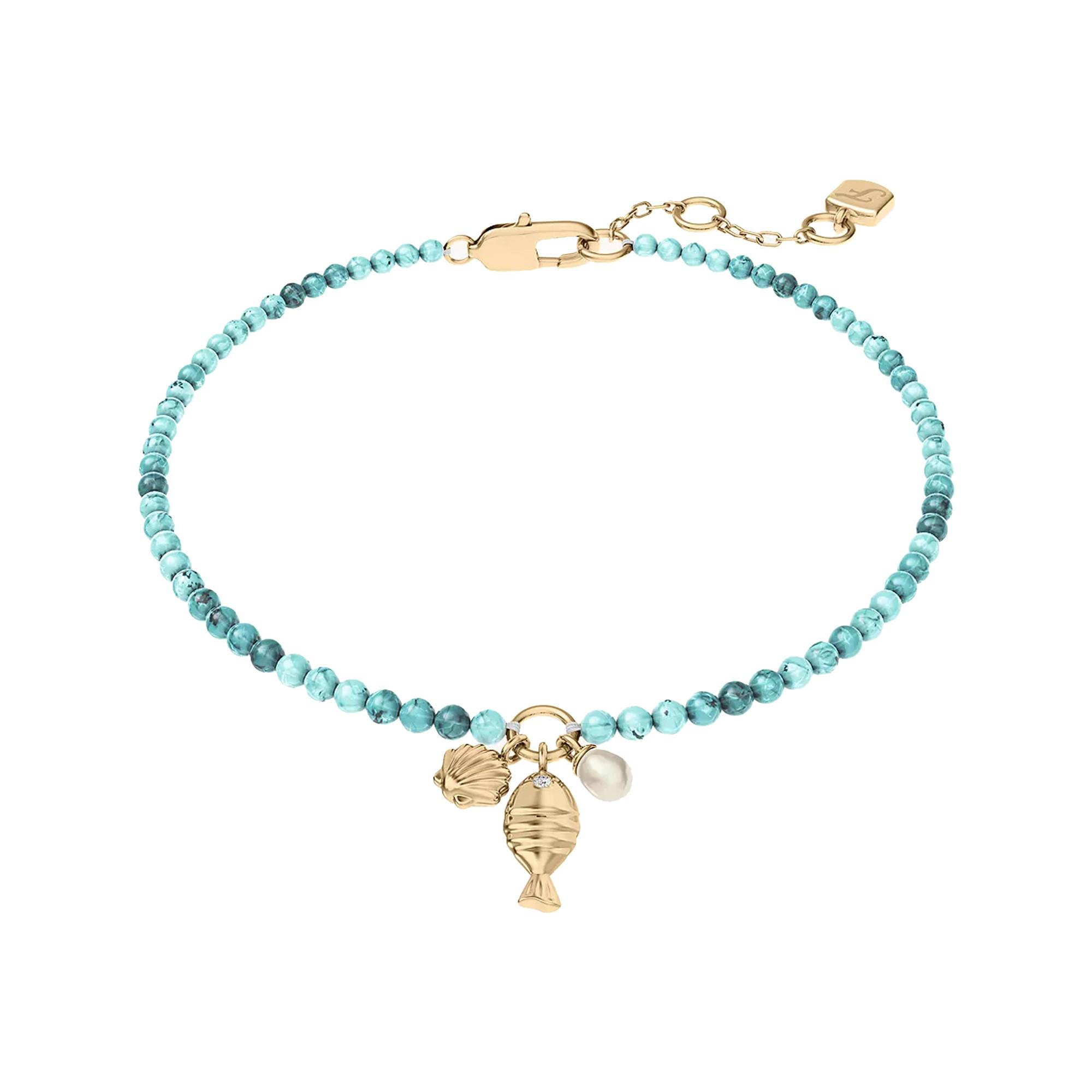 La collezione Sutton By the Sea unisce delicati ciondoli ispirati al mare in un design elegante e armonioso. Gli accenti in metallo lucido color oro si abbinano a perle in acrilico turchese, creando un contrasto vivace e raffinato in questo bracciale di perle. La chiusura a moschettone garantisce una tenuta sicura, mentre il design curato dona un’eleganza senza sforzo. Un accessorio versatile per ogni giorno e per le occasioni speciali.