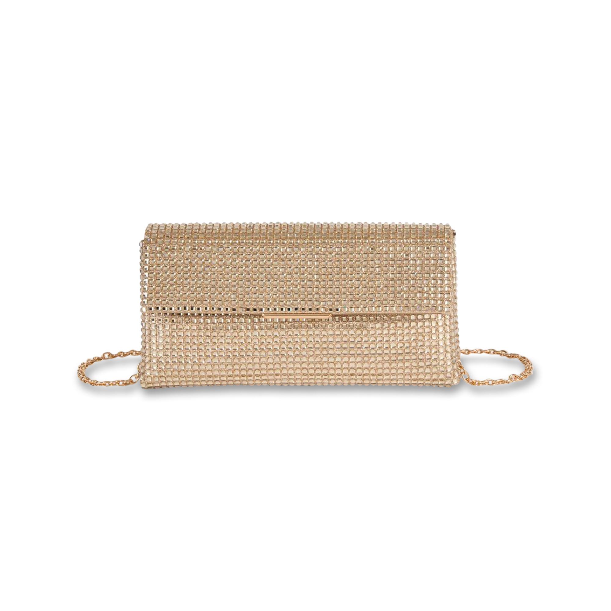 Questa elegante borsa clutch è progettata per aggiungere un tocco di brillantezza a qualsiasi outfit. Le sue dimensioni compatte sono ideali per trasportare l'essenziale, mentre l'esterno scintillante assicura un look glamour per le occasioni speciali.