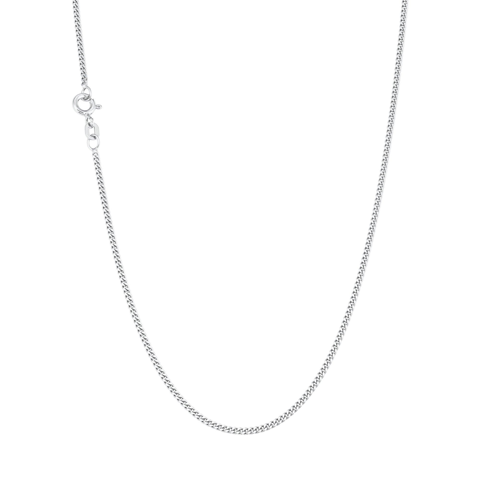 Design delicato e lavorazione di alta qualità si uniscono in questa collana a catena lunga 50 cm. Ideale per i ciondoli, l'argento sterling 925 si annida sulla pelle e rimane lucido e bello a lungo grazie al rivestimento in rodio. Lo spessore della catena è di circa 2 mm. La collana è adatta a donne e uomini. Un pratico anello a molla funge da chiusura.