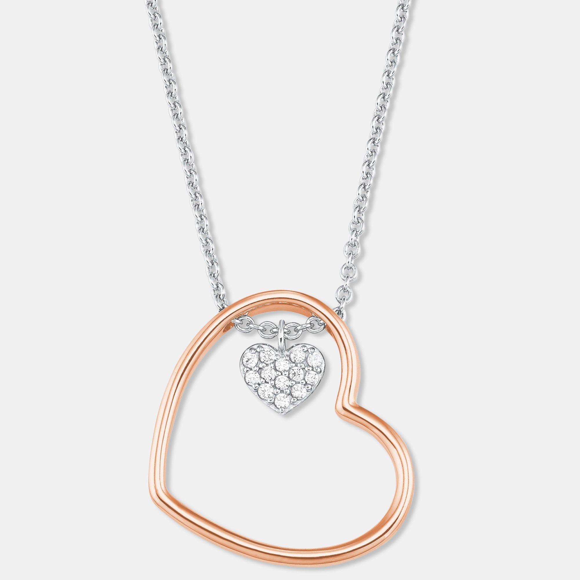 Questa collana da donna firmata s.Oliver invia un messaggio chiaro: Love! Il ciondolo a cuore dalla calda placcatura in oro rosa integra un altro cuore in argento sterling 925 e zirconi bianchi. Entrambi gli elementi pendono da una catena rotonda regolabile in lunghezza (42 +3 cm) in argento di alta qualità. Uno strato parziale di rodio protegge il gioiello dall'ossidazione ed è particolarmente delicato sulla pelle.
