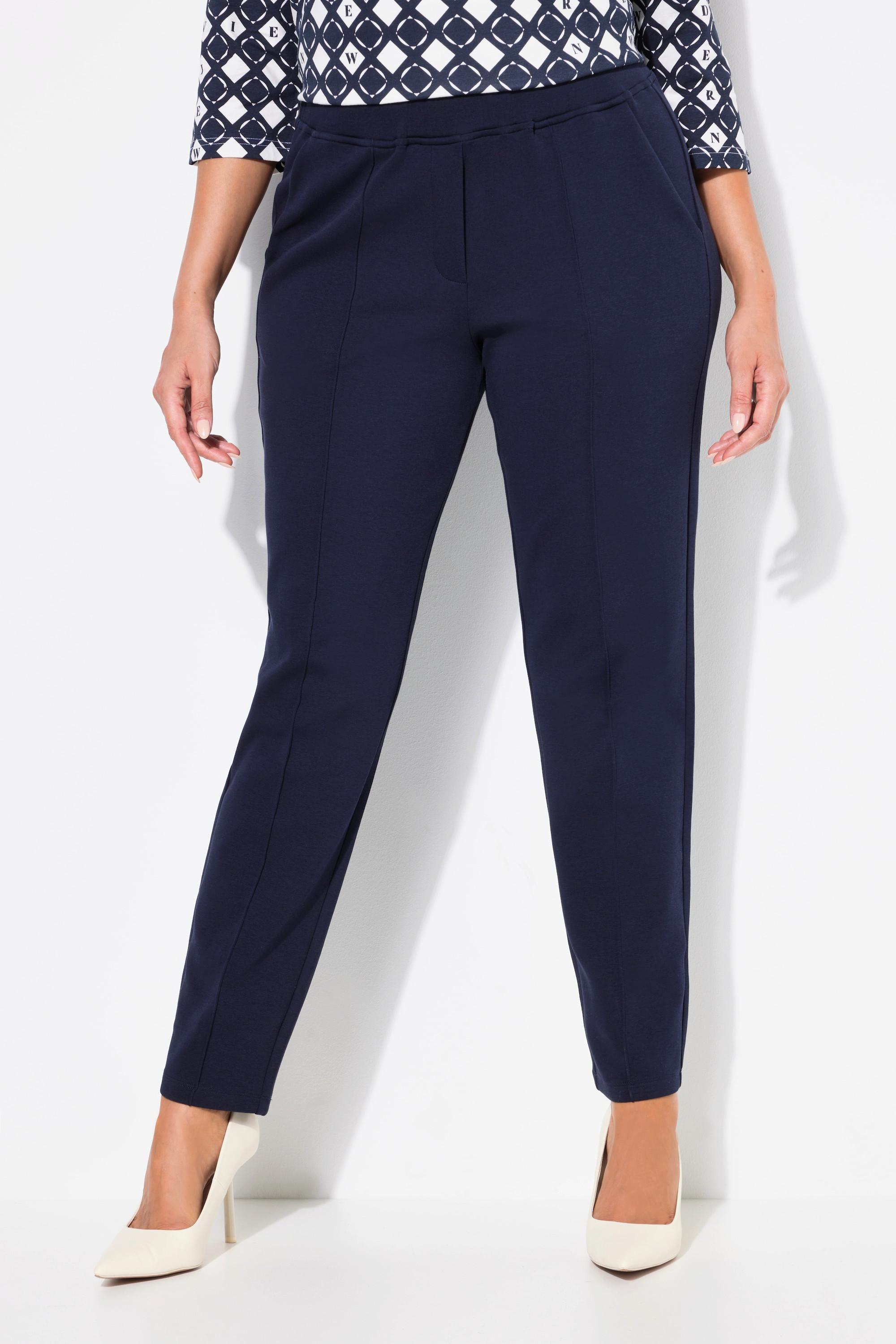 Ulla Popken Pantaloni Punto di Roma Gamba Conica con Nervature e Vita Elastica