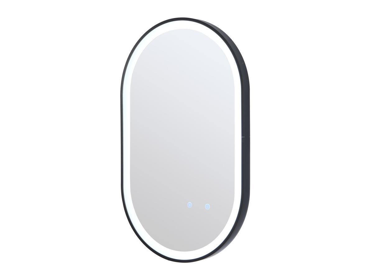 Vente-unique, Specchio per bagno luminoso ovale antiappannamento con contorno 50 x 80 cm Nero - ALARICO