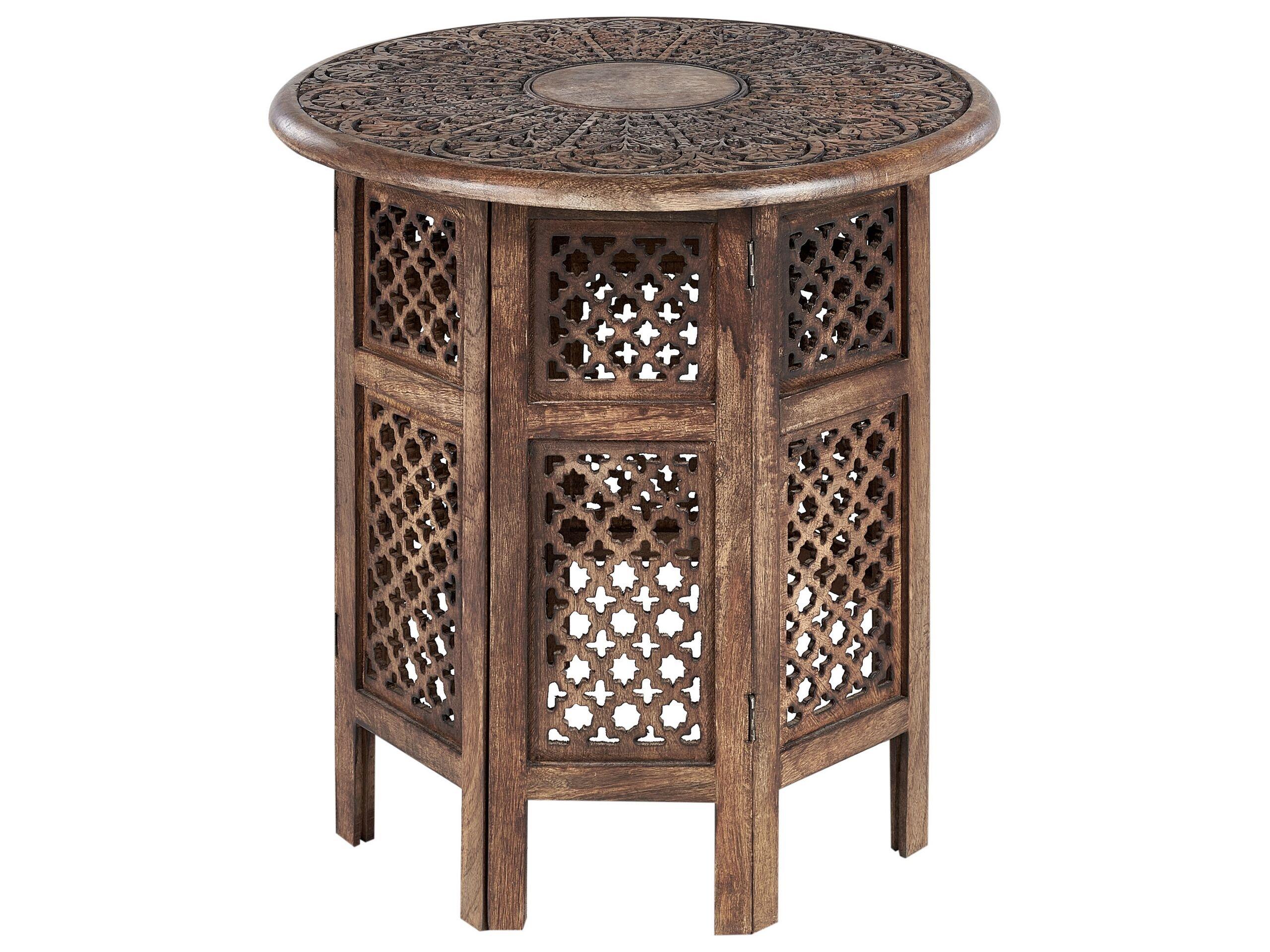 Tavolino in legno di mango. Aggiungi un tocco orientale ai tuoi ambienti con questo tavolino funzionale e decorativo. Realizzato a mano con la massima precisione in legno di mango, emana un carattere naturale grazie alle venature e visibili di questo materiale. La base presenta un intricato design traforato che catturerà sicuramente l'attenzione dei tuoi ospiti. Inoltre, le sue dimensioni compatte lo rendono un complemento perfetto per gli spazi limitati.