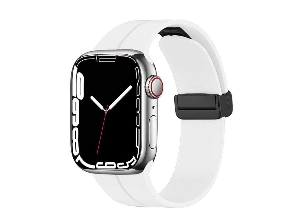 Questo braccialetto in silicone per l'Apple Watch 42/44/45 mm è stato progettato per accompagnarti in tutte le tue uscite sportive, culturali o festive. Facile da adattare al polso, è dotato di un esclusivo sistema di chiusura magnetica con fibbia pieghevole per una facilità d'uso e un comfort ottimali.