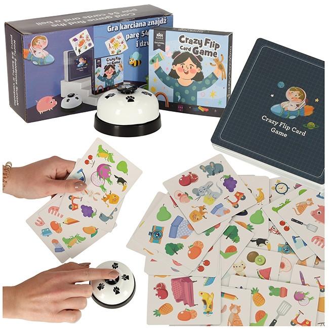Un gioco di carte che farà sì che non ci sia spazio per la noia! L'obiettivo è semplice: devi trovare una coppia di immagini tra le carte. Questo gioco è un eccellente allenamento di percettività e agilità. Il set include: 54 carte e una campana di metallo per scuotere ulteriormente il gameplay