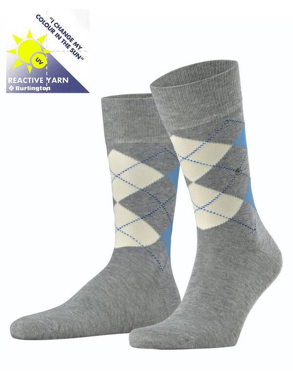 Questi calzini presentano un motivo argyle che cambia colore se esposto alla luce solare, grazie alla tecnologia del filato reattivo. Il design classico è arricchito da un elemento giocoso e innovativo, rendendoli un'aggiunta unica a qualsiasi guardaroba.