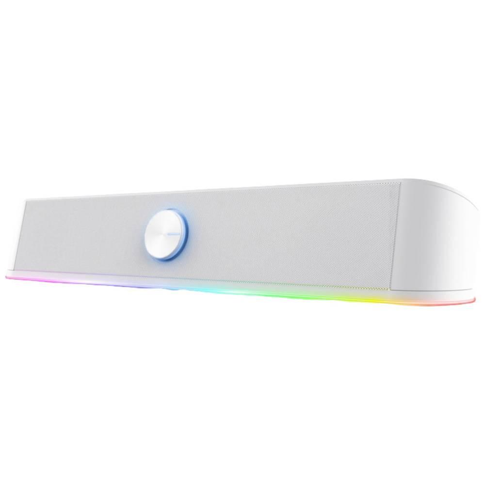 Soundbar stereo con illuminazione RGB e design salvaspazio. Audio stereo Godetevi un suono stereo di alta qualità con potenza di picco di 12 W (6 W RMS) con la Soundbar GXT619 di Tharne - e portate il vostro intrattenimento a un livello superiore. Privo di disordine Grazie al design salvaspazio, la soundbar può essere facilmente posizionata sotto il monitor, in modo che la vostra scrivania rimanga spazio per altri oggetti o accessori. Non è necessaria alcuna configurazione Il cavo di alimentazione USB e il cavo aggiuntivo in dotazione sono tutto ciò was got necessario - non è necessario alcun setup (o presa di corrente). Illuminazione perfetta Con l'illuminazione RGB in 6 diverse modalità è possibile creare un'impostazione audio-visiva suggestiva, perfetta per film, musica e giochi.