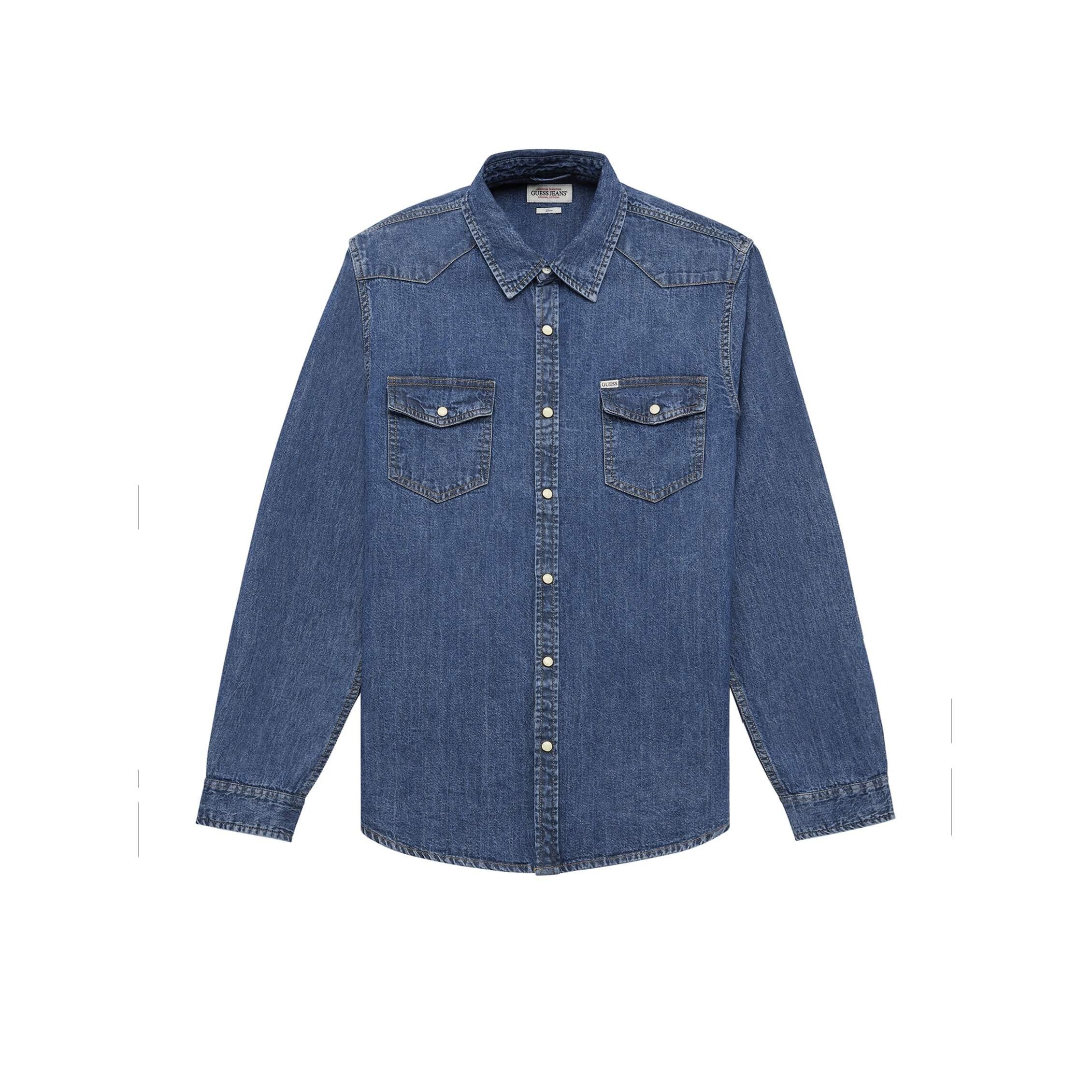 GUESS Camicia in Denim Maniche Lunghe Slim Fit