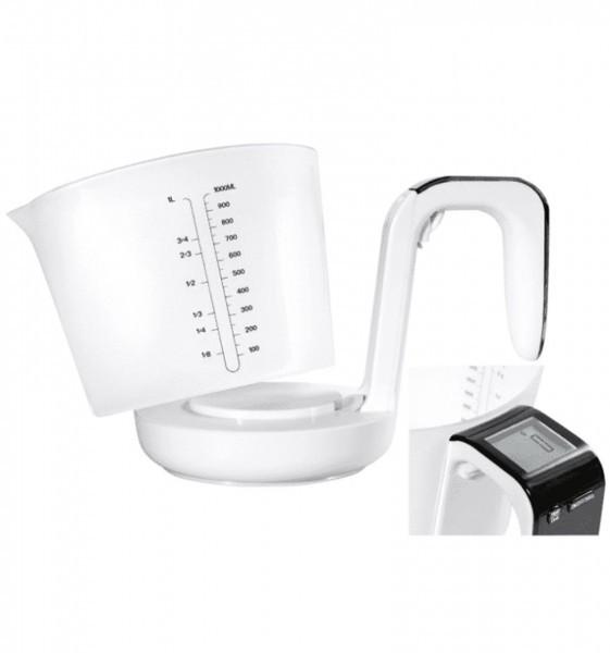 - Küchenwaage mit abnehmbarem Messbecher zum gleichzeitigen Wiegen und Messen
