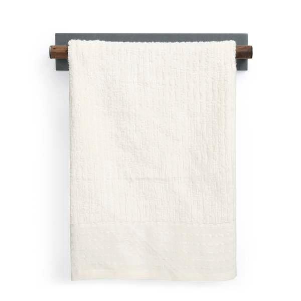 Il supporto per asciugamani di Forster Home è realizzato in legno di rovere o noce certificato FSC e acciaio inox verniciato a polvere.