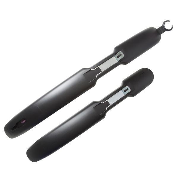 Questo set di parafanghi universale offre protezione dagli schizzi ed è un'aggiunta ideale alla tua bici. Il set è compatibile con la maggior parte delle bici da 24 a 26 pollici. Il montaggio semplice e veloce ti consente di equipaggiare la tua bici in un batter d'occhio. Il parafango è realizzato in plastica robusta e offre una protezione affidabile in caso di pioggia. Non è adatto per mountain bike e BMX. Grazie alla regolazione in altezza con utensili non inclusi, puoi adattare in modo ottimale i parafanghi alla tua bici. Decathlon offre una garanzia di 2 anni su questo prodotto.
