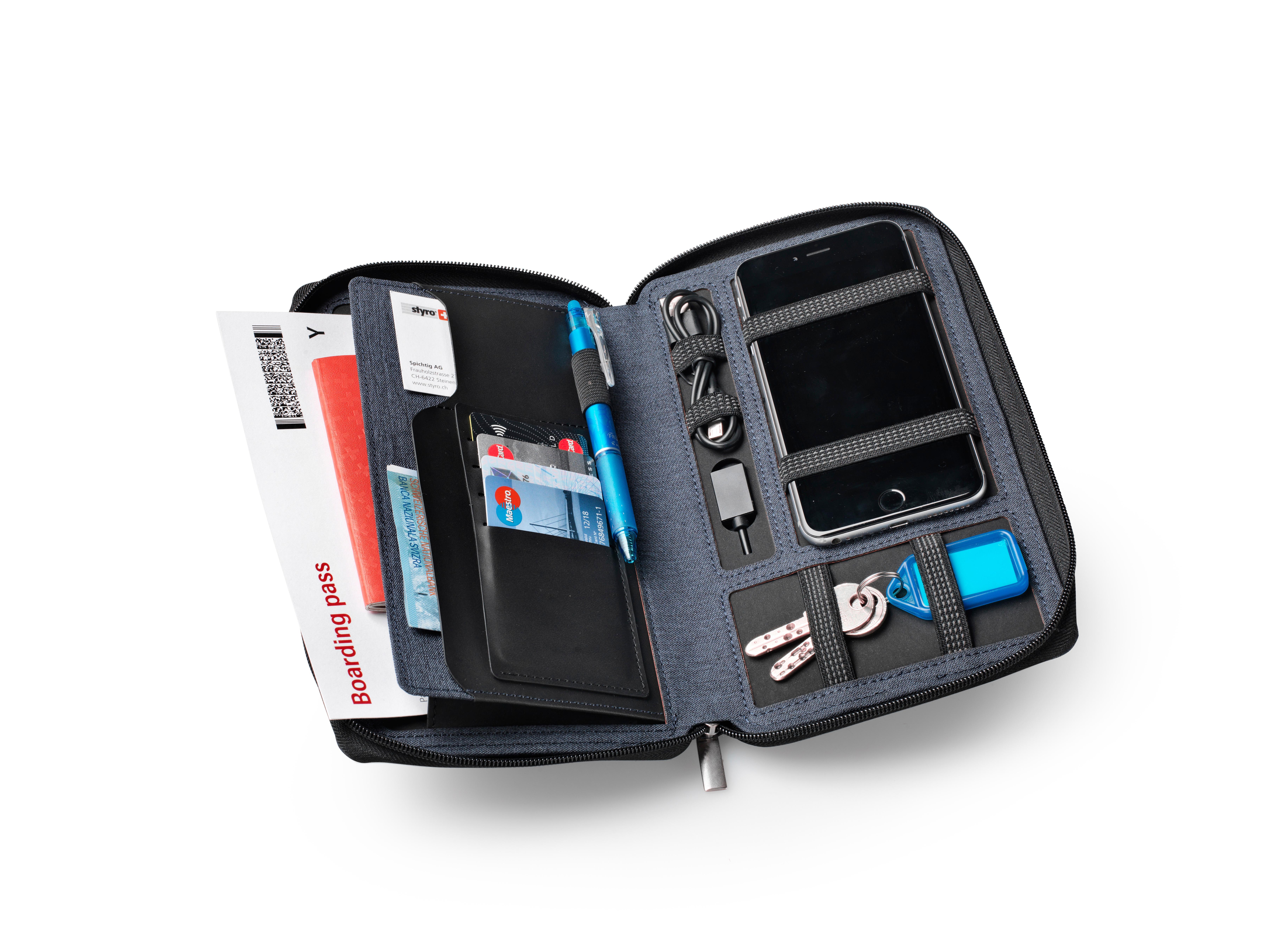 dufco by styro Travel wallet with powerbank 4000 mAh "Smart Organizers", blue jeans with dufco logo