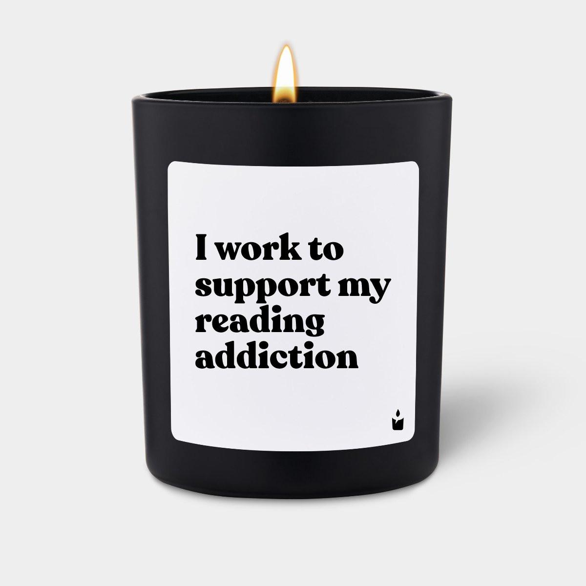 CandleHand Duftkerze Woody I work to support my reading addiction