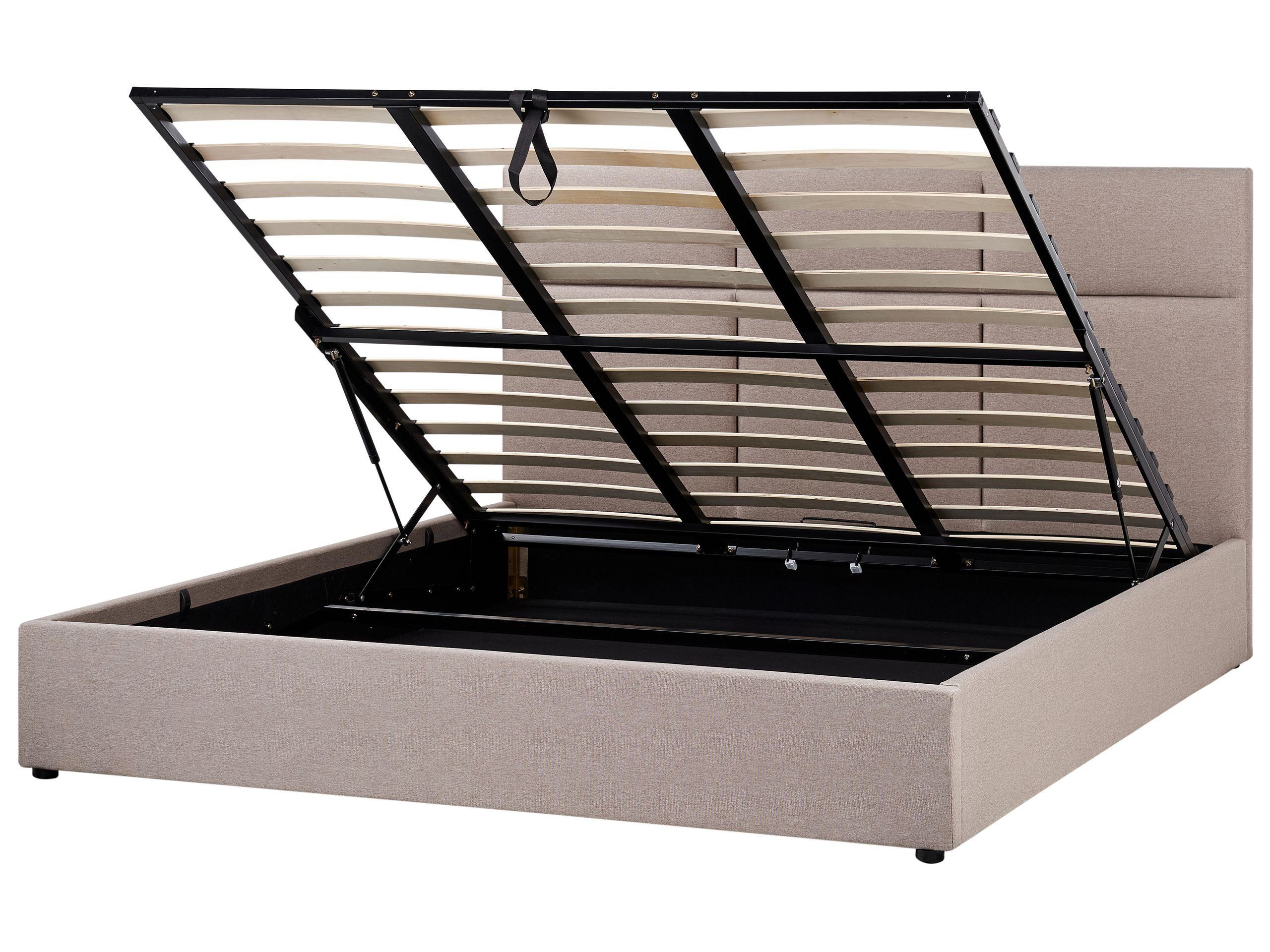 Letto contenitore con testiera. Questo elegante letto con contenitore offre la perfetta combinazione di comfort e praticità per un sonno riposante. La raffinata struttura del letto, abbinata alla testiera imbottita e morbida, garantisce il massimo relax, mentre la base a doghe supporta una corretta postura del corpo. Il compartimento integrato offre spazio aggiuntivo per la biancheria da letto o altri essenziali, aiutandoti a mantenere la tua camera da letto ordinata e organizzata.