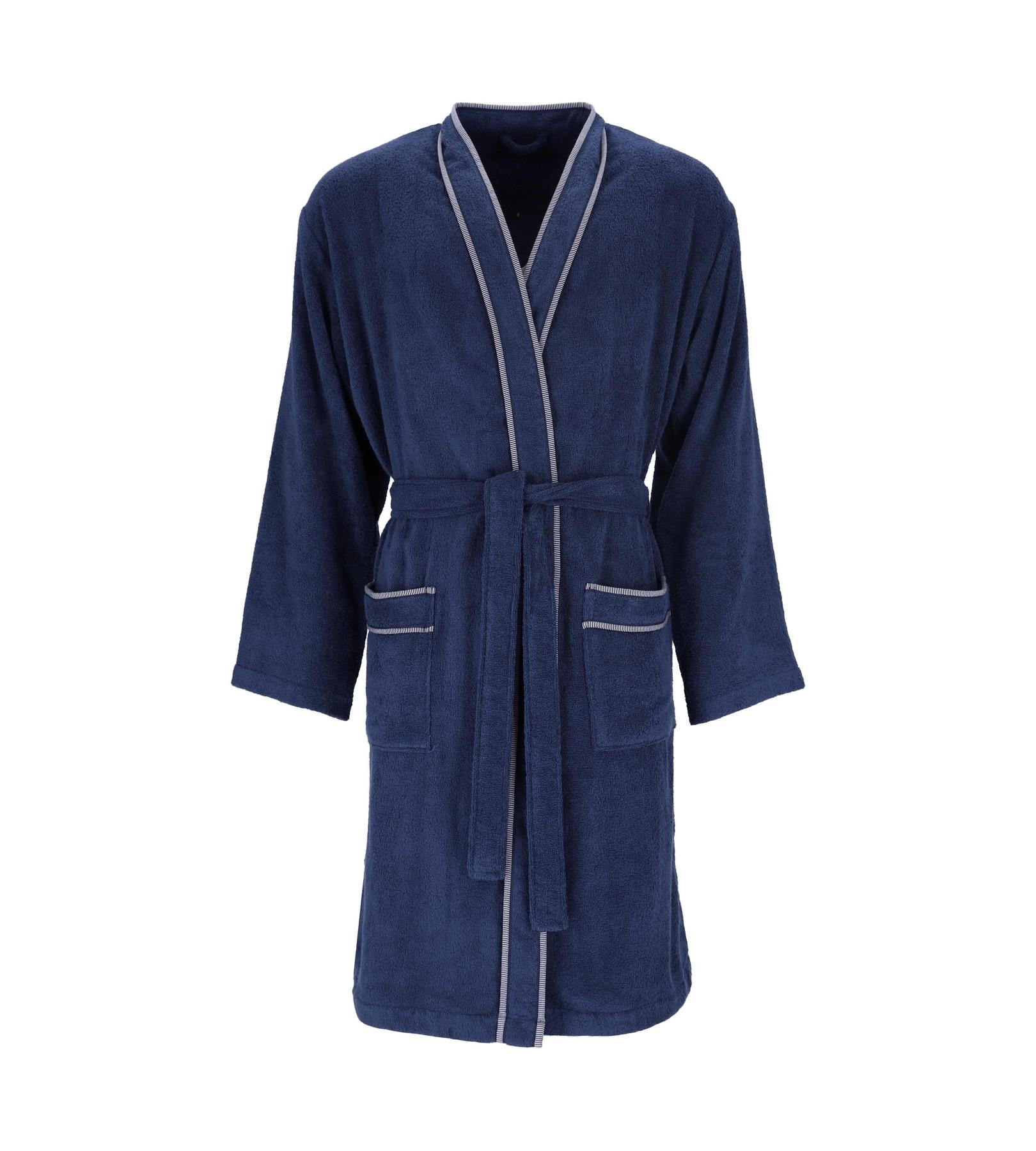 L'accappatoio Jack offre comfort e stile per momenti di relax. Questo accappatoio presenta un design classico con una cintura da annodare per una vestibilità regolabile e due pratiche tasche applicate. Il bordo a contrasto lungo il colletto, l'apertura frontale e le tasche aggiunge un tocco raffinato all'aspetto generale.