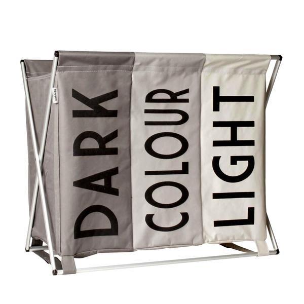 - Elegante cesto della biancheria in tre parti per aiutarti a smistare il bucato