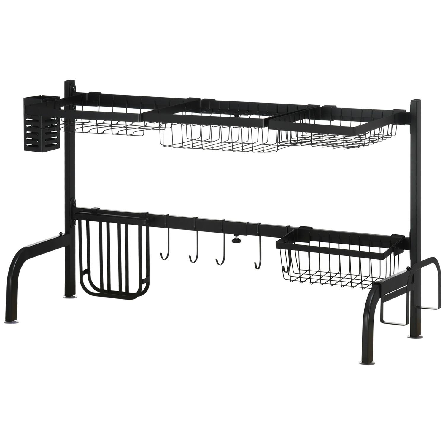 Northio Scolapiatti Scolapiatti A 2 Ripiani, Scolapiatti Con Ganci, Vassoio Raccogligocce, Acciaio, Nero, 51-93 Cm