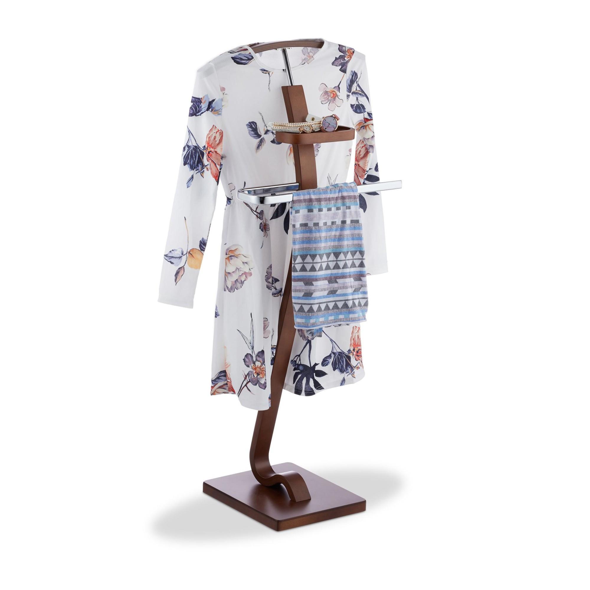 Il servomuto da uomo indipendente garantisce abiti senza pieghe, offrendo una soluzione ottimale per gli outfit più eleganti. Questo elegante servomuto in noce mantiene giacche, camicie, pantaloni e gonne in perfette condizioni.