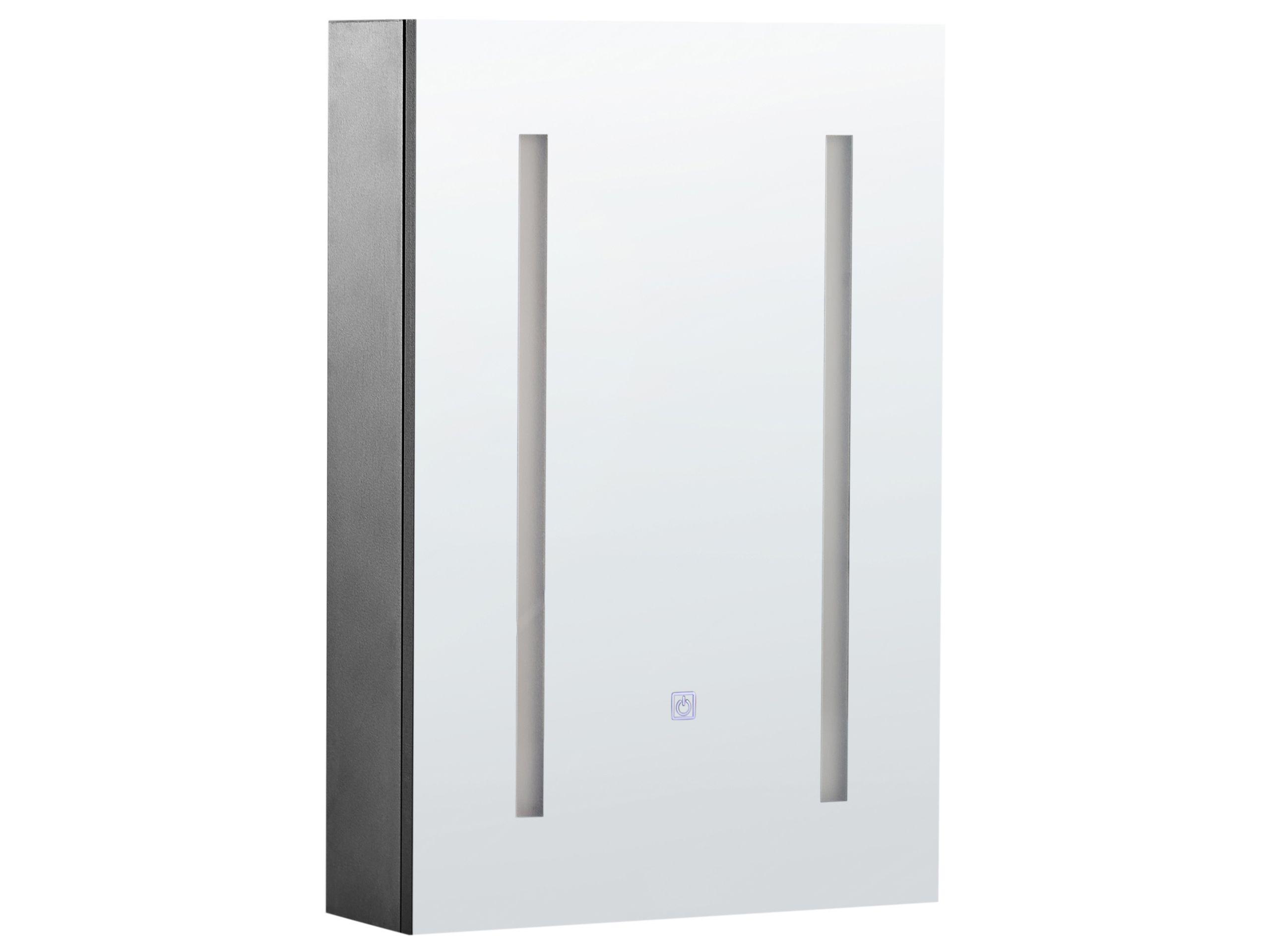 Elegante mobiletto da bagno a specchio. Questo mobile da bagno dal design moderno è ideale per diversi ambienti domestici contemporanei. Dotato di uno specchio frontale, non solo migliora l'aspetto della stanza creando un'illusione di maggiore spazio, ma ha anche una funzione pratica. Dotato di illuminazione LED integrata, fornisce un'ampia illuminazione, semplificando la tua routine quotidiana di cura della pelle. Un unico ripiano divide lo spazio dietro lo specchio, ottimizzando lo spazio dei tuoi articoli da toilette e degli oggetti essenziali del bagno. Realizzato con materiali pregiati, questo mobile è un esempio di raffinato minimalismo.