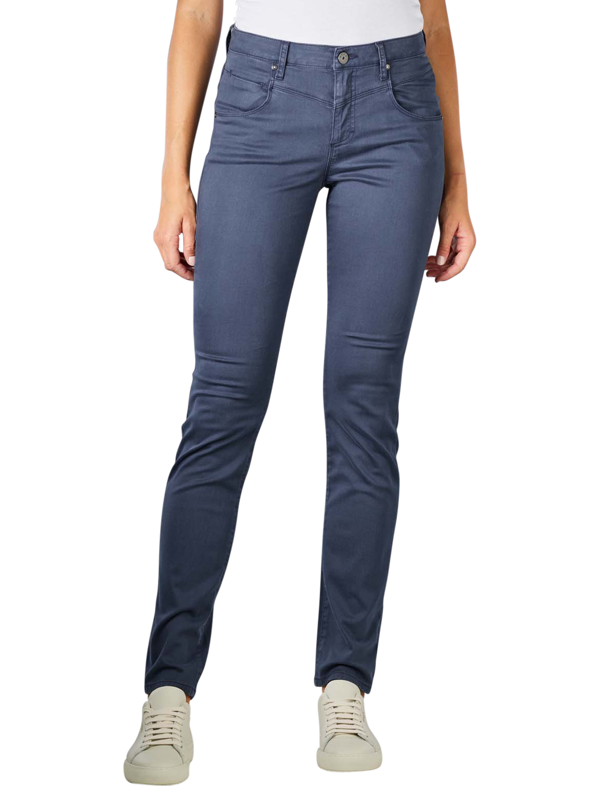 Questi pantaloni Shakira Skinny Fit si distinguono per una gamba stretta e una vita alta. La componente elasticizzata assicura una vestibilità particolarmente buona e un elevato comfort. I pantaloni possono essere abbinati perfettamente per riunioni o per il tempo libero. Un piccolo dettaglio discreto è incorporato nella tasca posteriore, valorizzando l'aspetto dei pantaloni.
