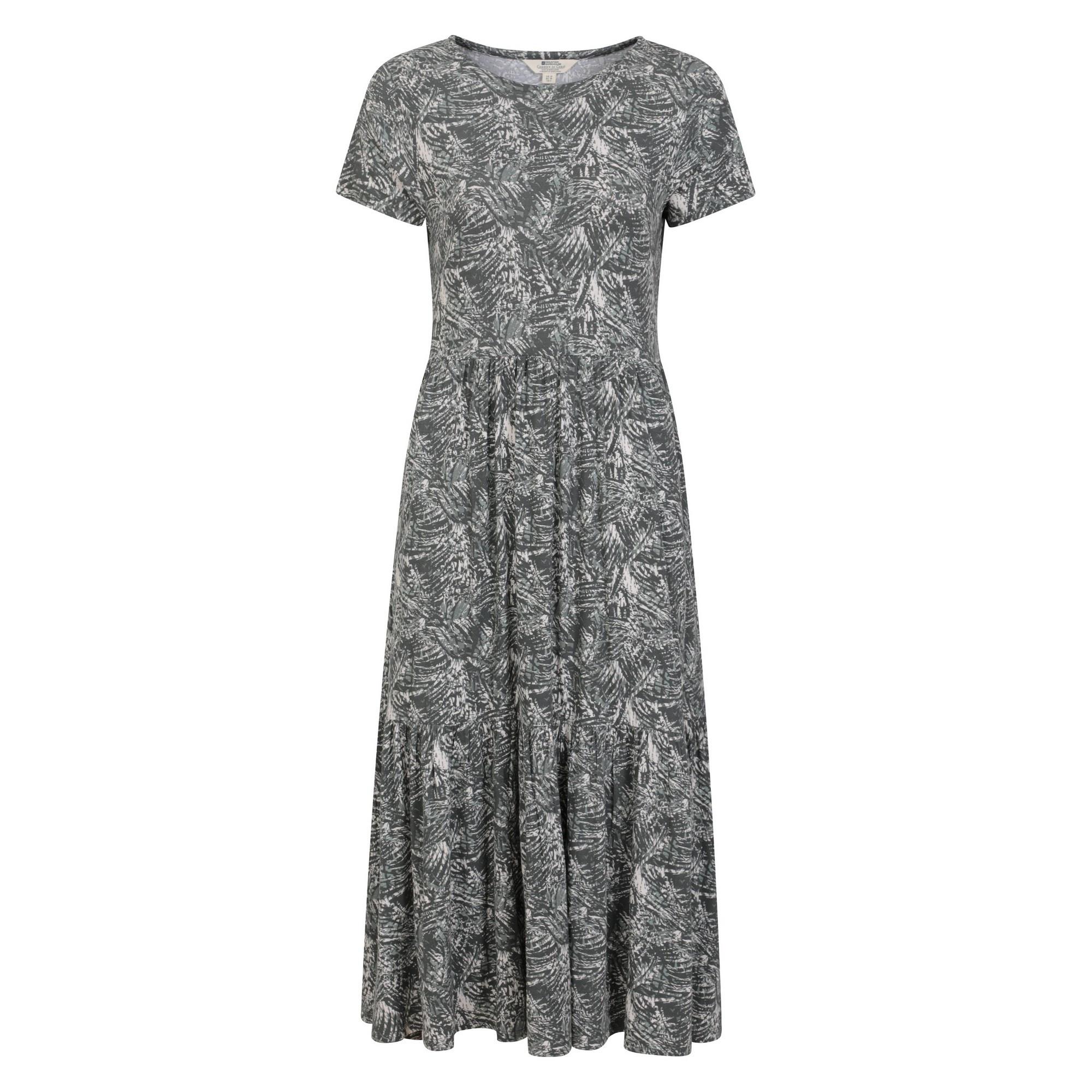 L'abito Sardinia a Strati presenta un comodo design a maniche corte con scollo rotondo. La gonna a strati aggiunge una silhouette fluida, rendendolo un capo versatile per varie occasioni. La stampa a foglie all-over aggiunge un tocco di stile ispirato alla natura.