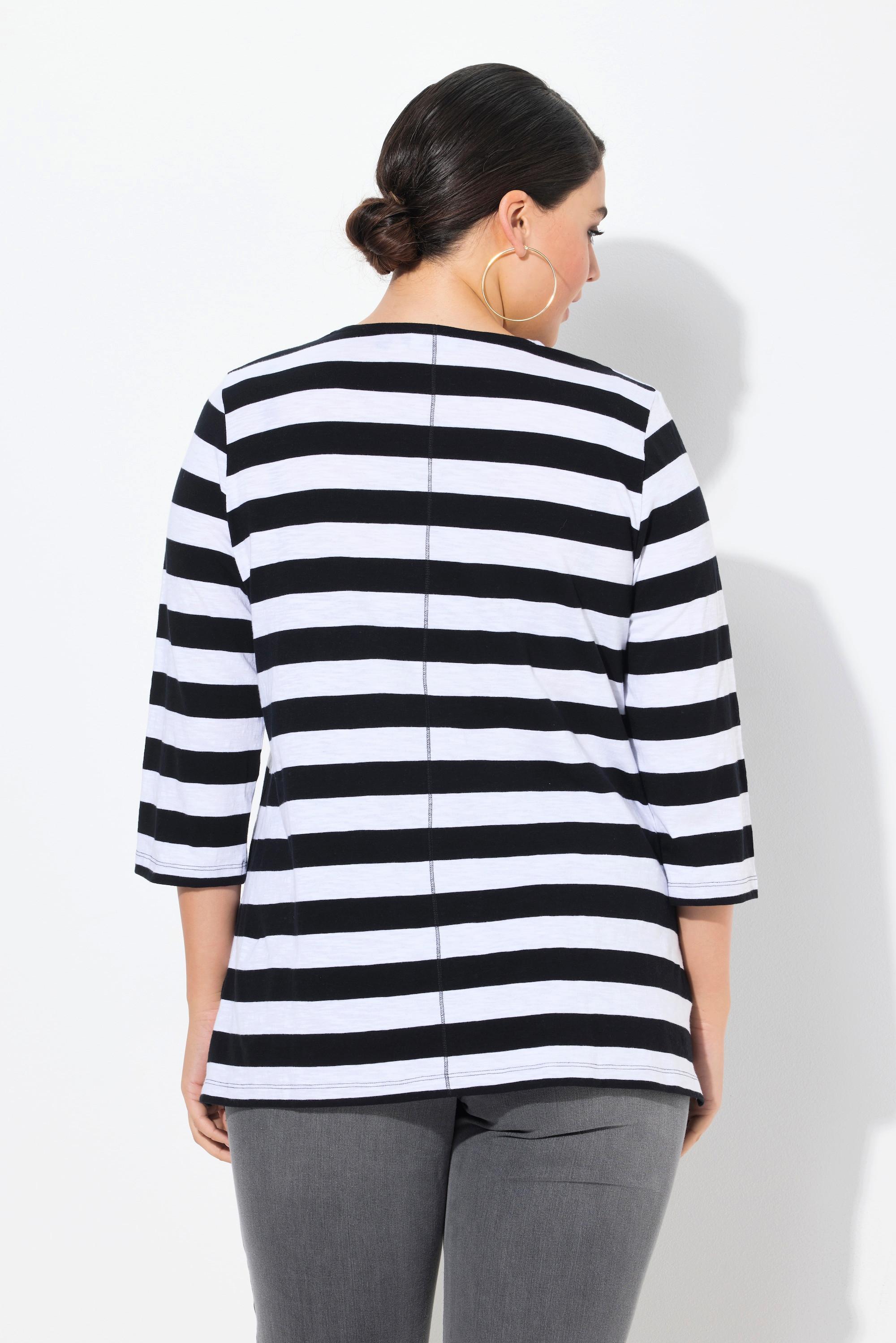Ulla Popken Maglia a righe Classic Scollo a V Maniche 3/4 con peperoncino decorato