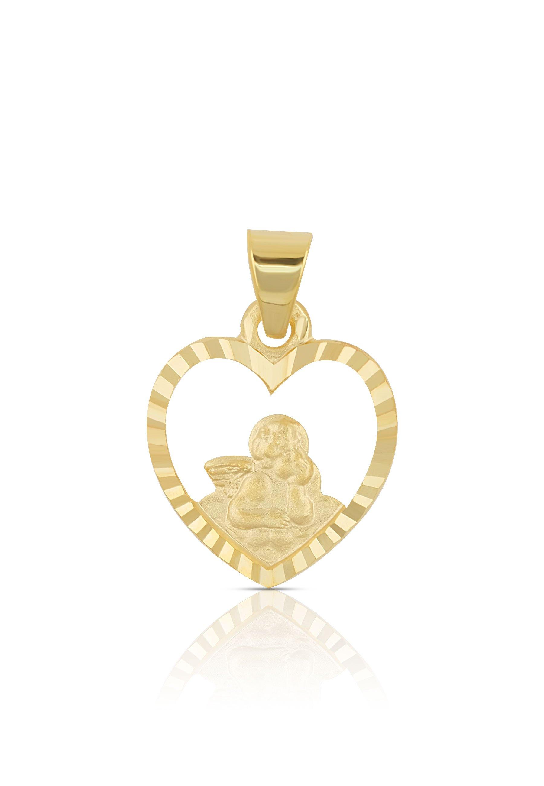 MUAU Schmuck Engel Anhänger Gelbgold 750 Herzform ausgeschnitten, 15x11mm
